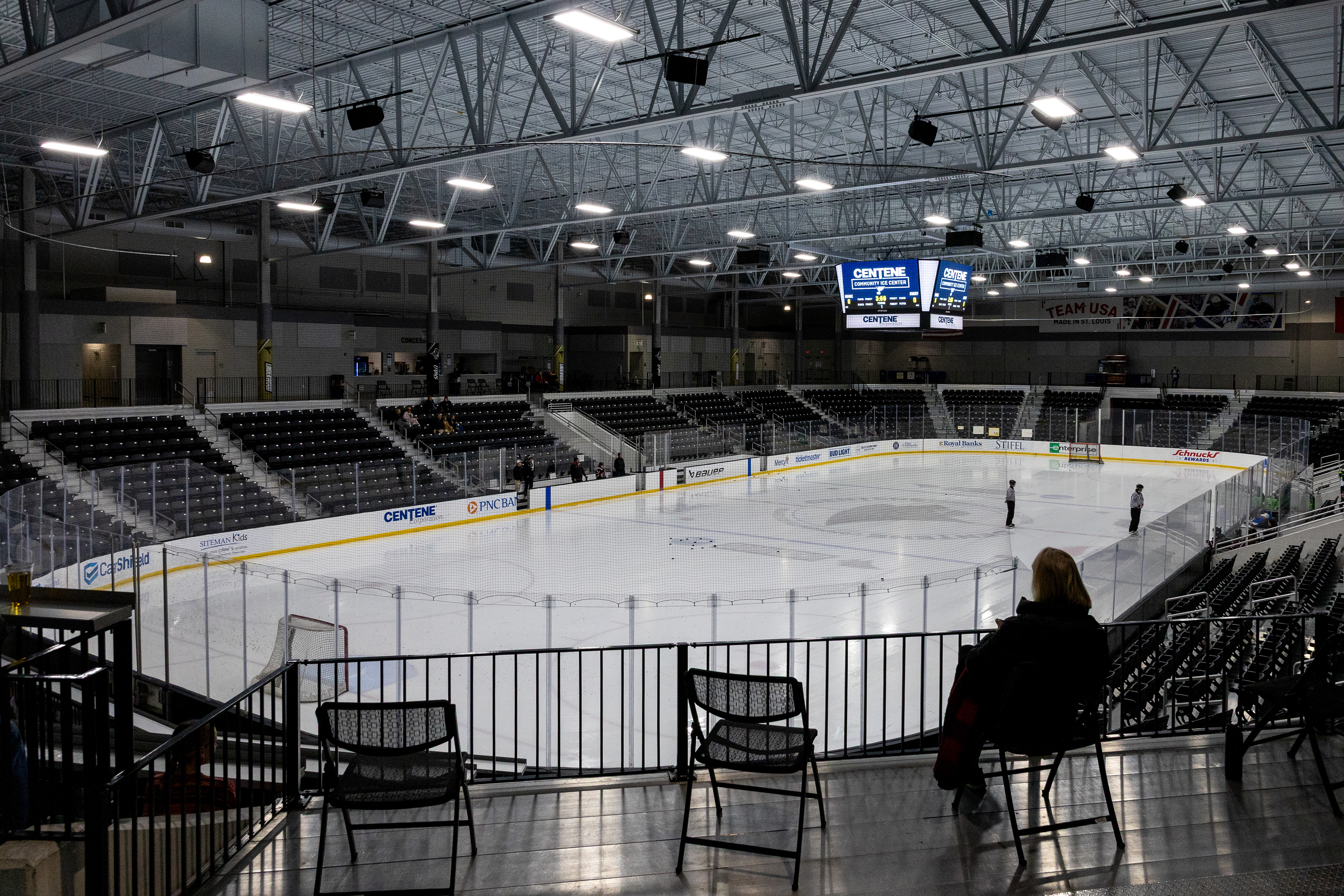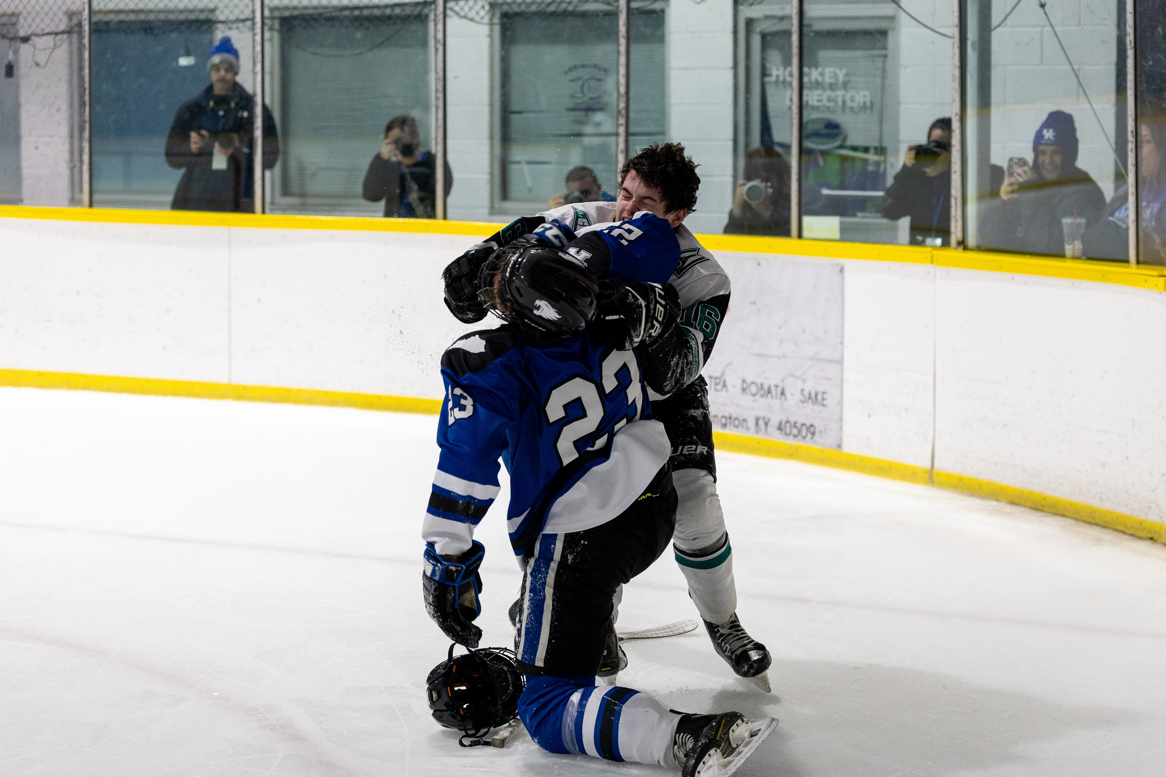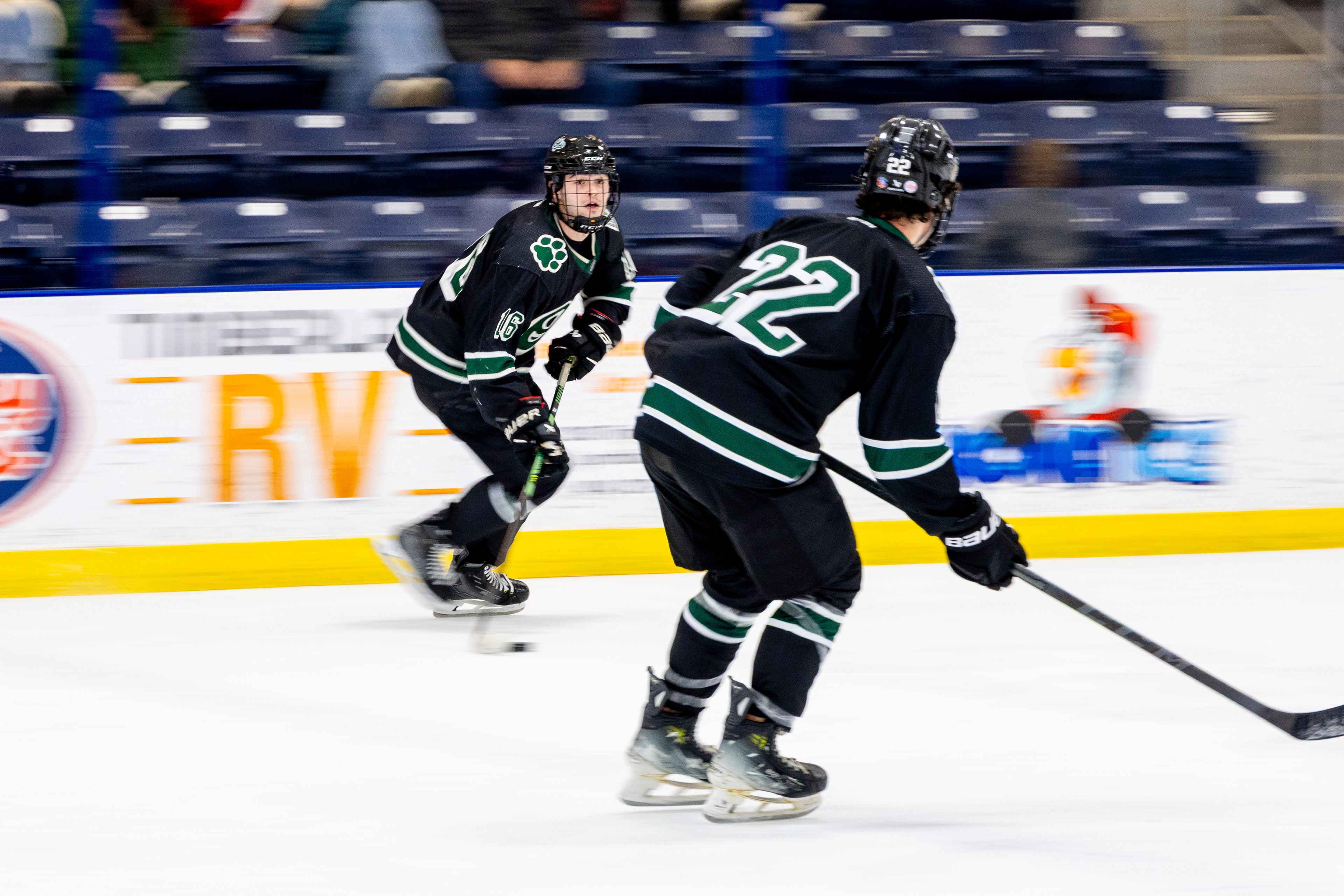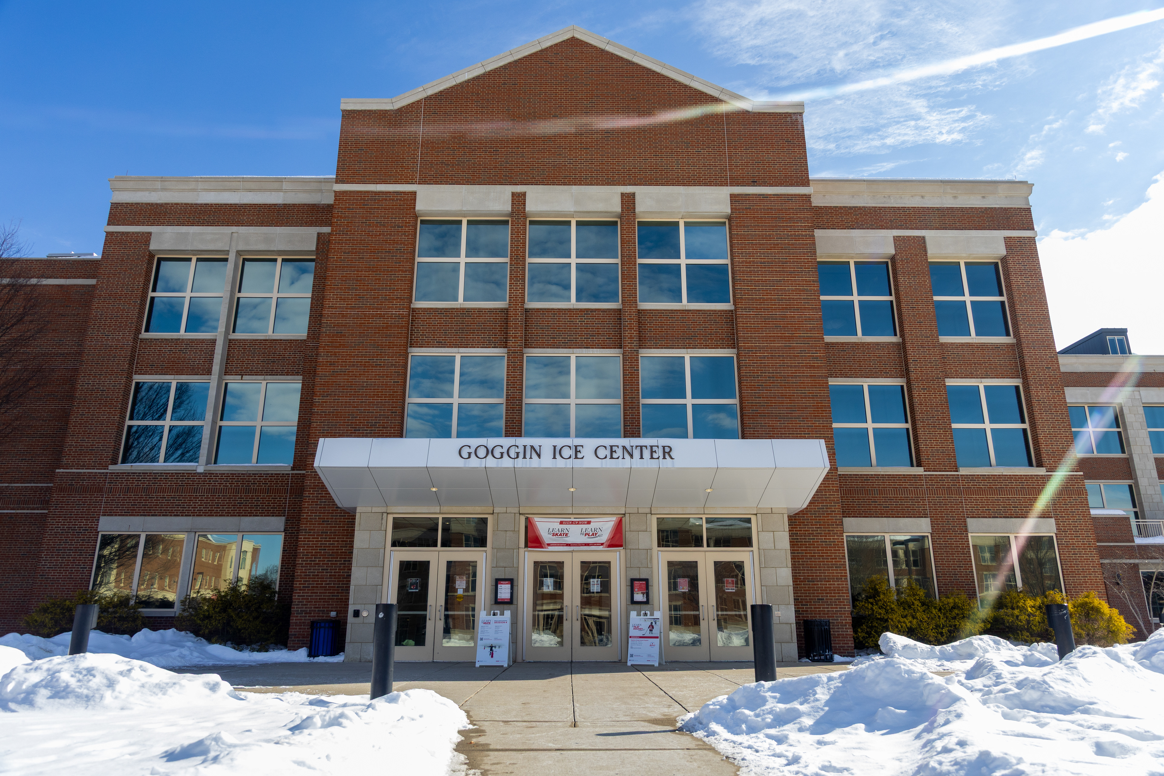 Ohio Bobcats #31, Austin Martin, blocks a shot at the second day of the 2026 ACHA SE Regionals tournament against Penn State in Heritage Bank Center on February 22 2026.