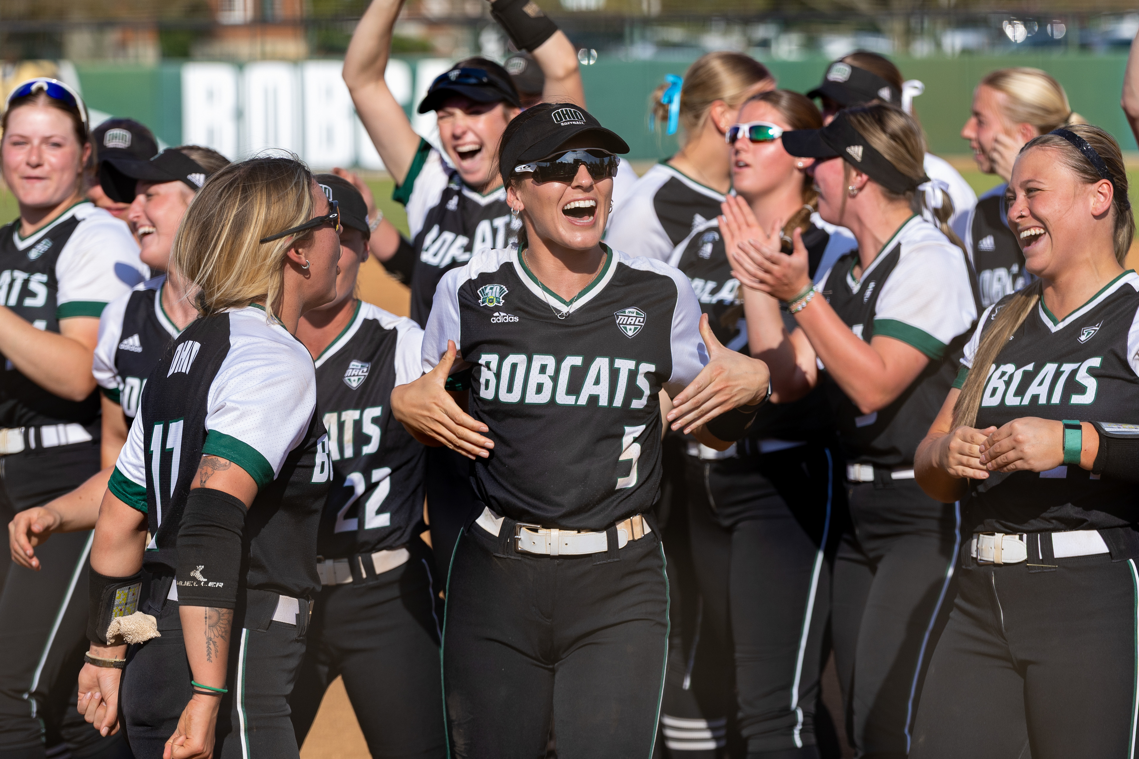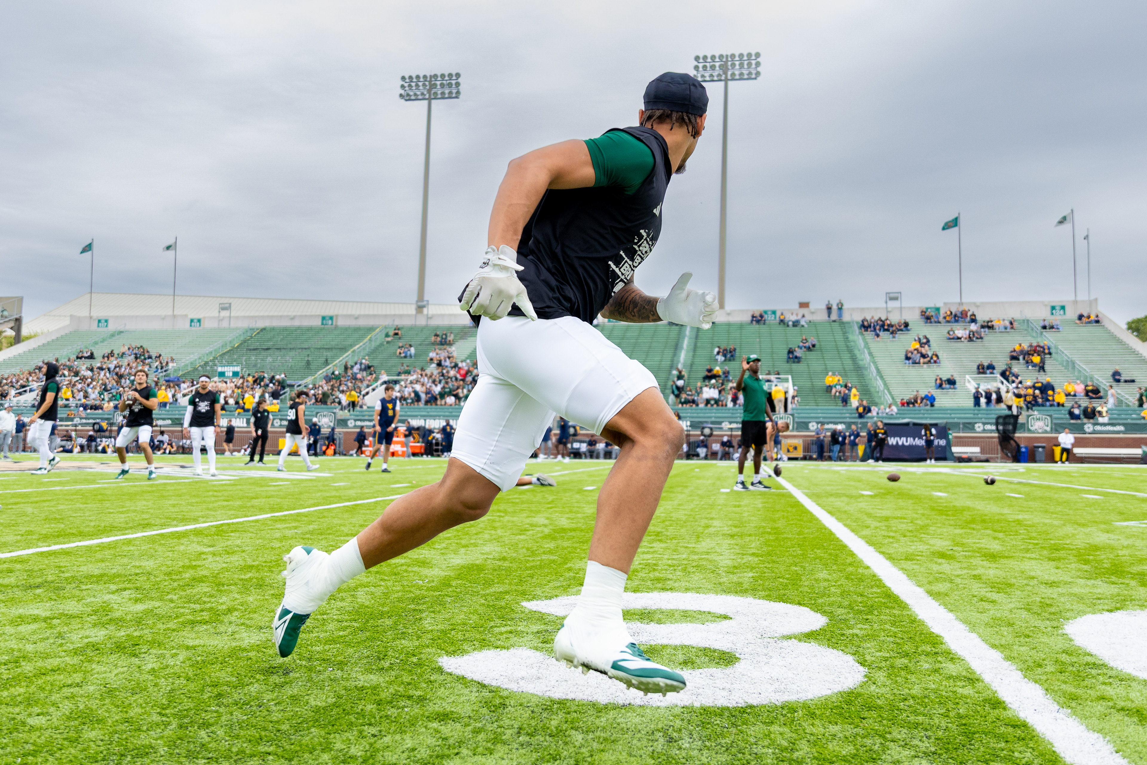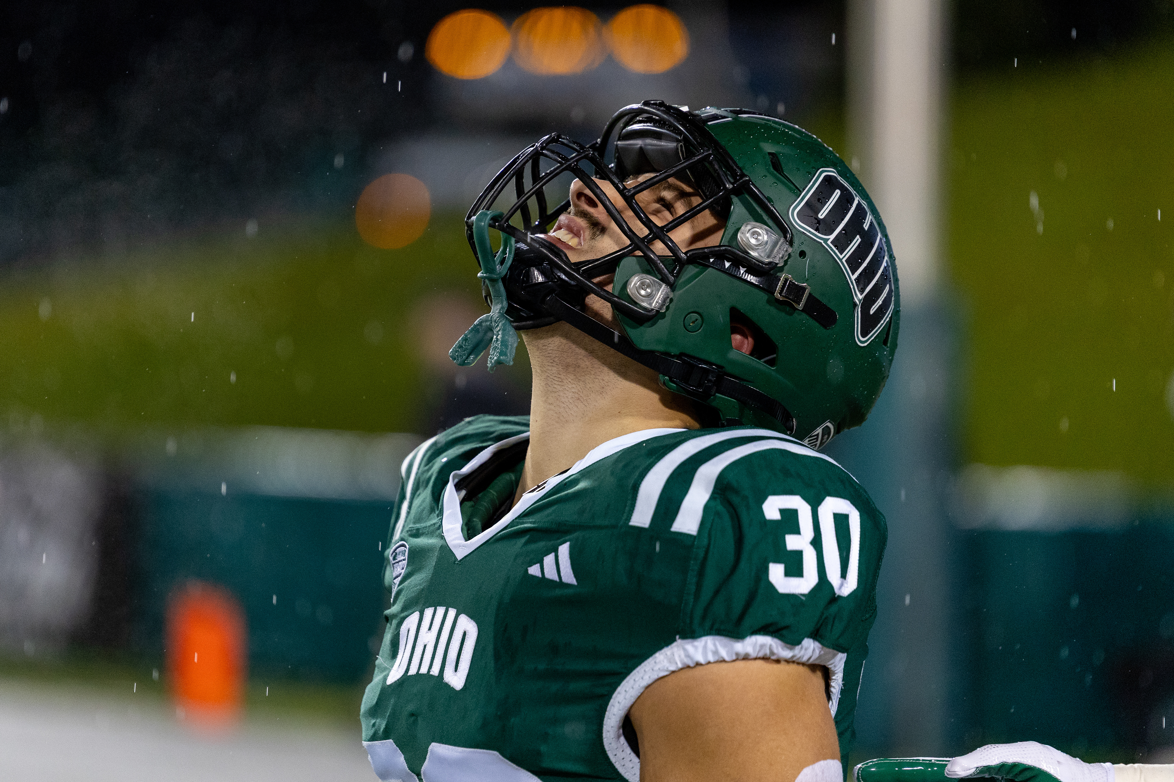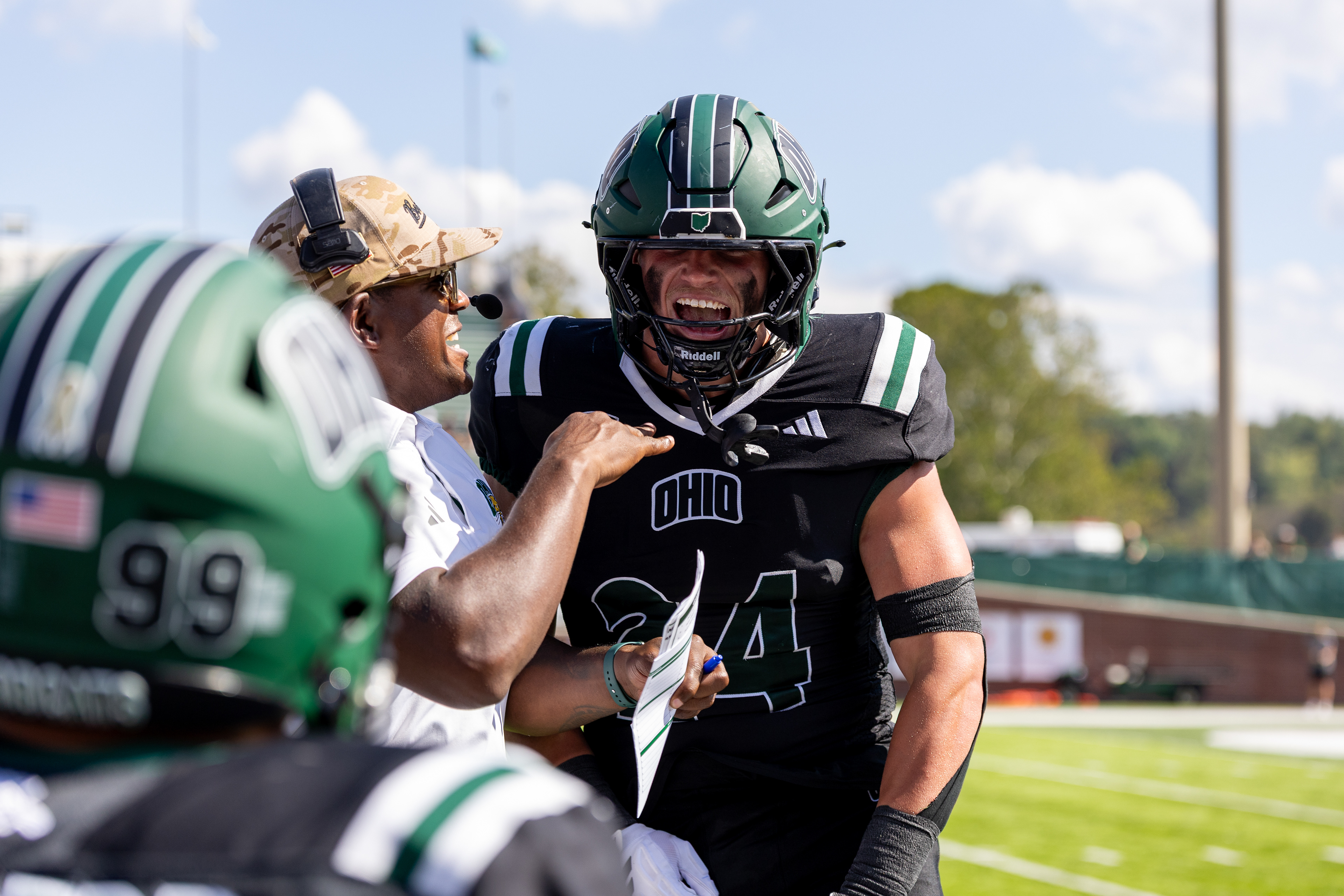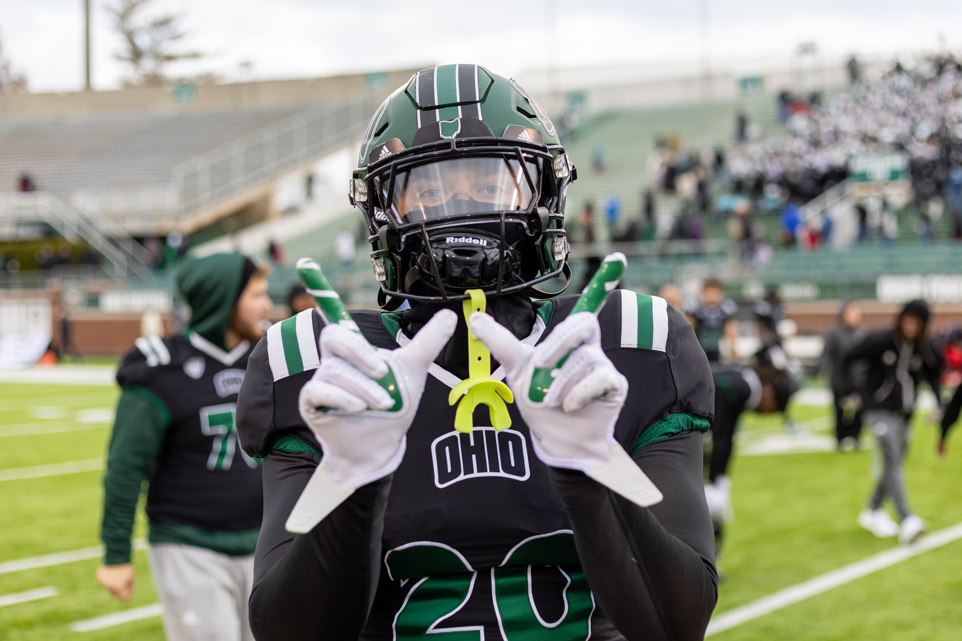Ohio Bobcats #6, Coleman Owens, celebrates after a touchdown against the Buffalo Bulls at Peden Stadium on October 26 2024.