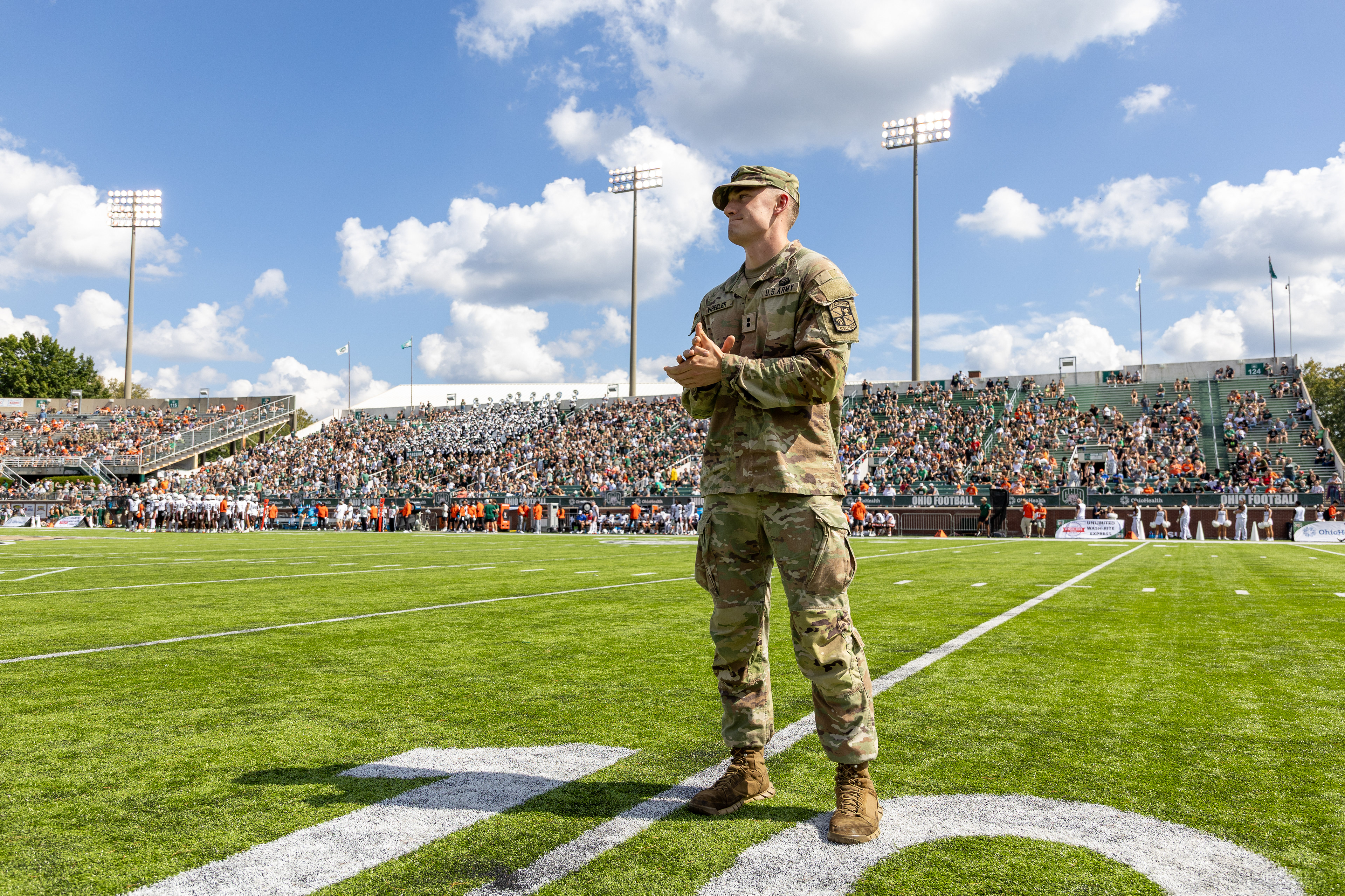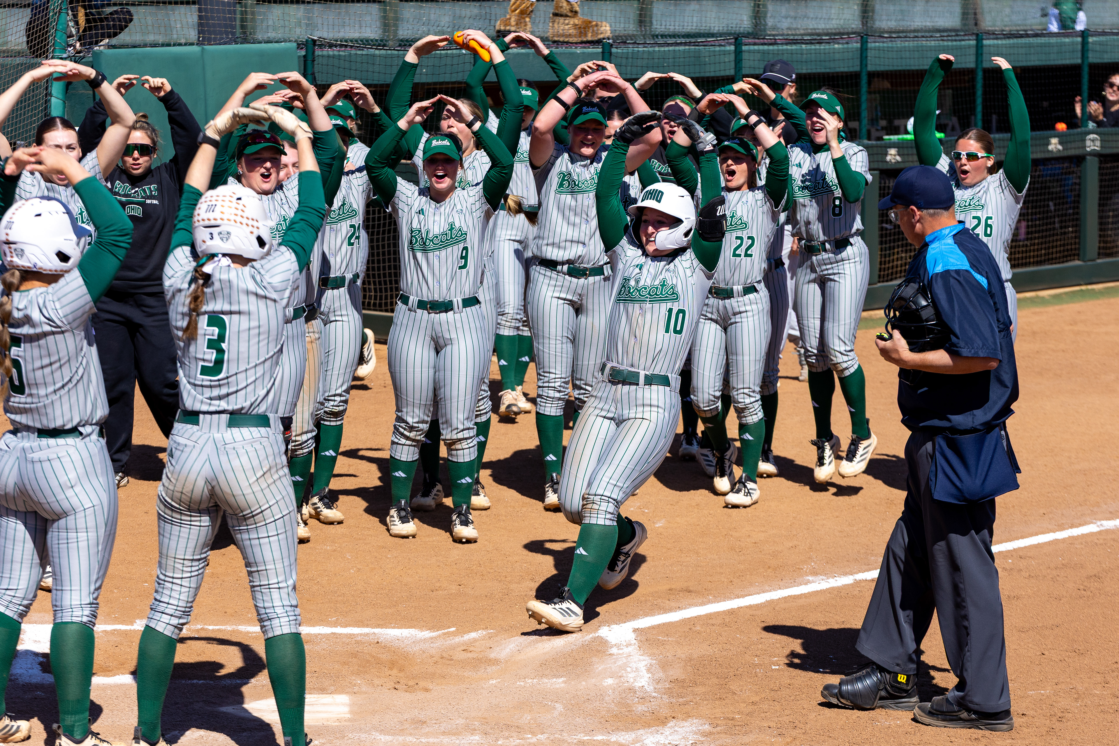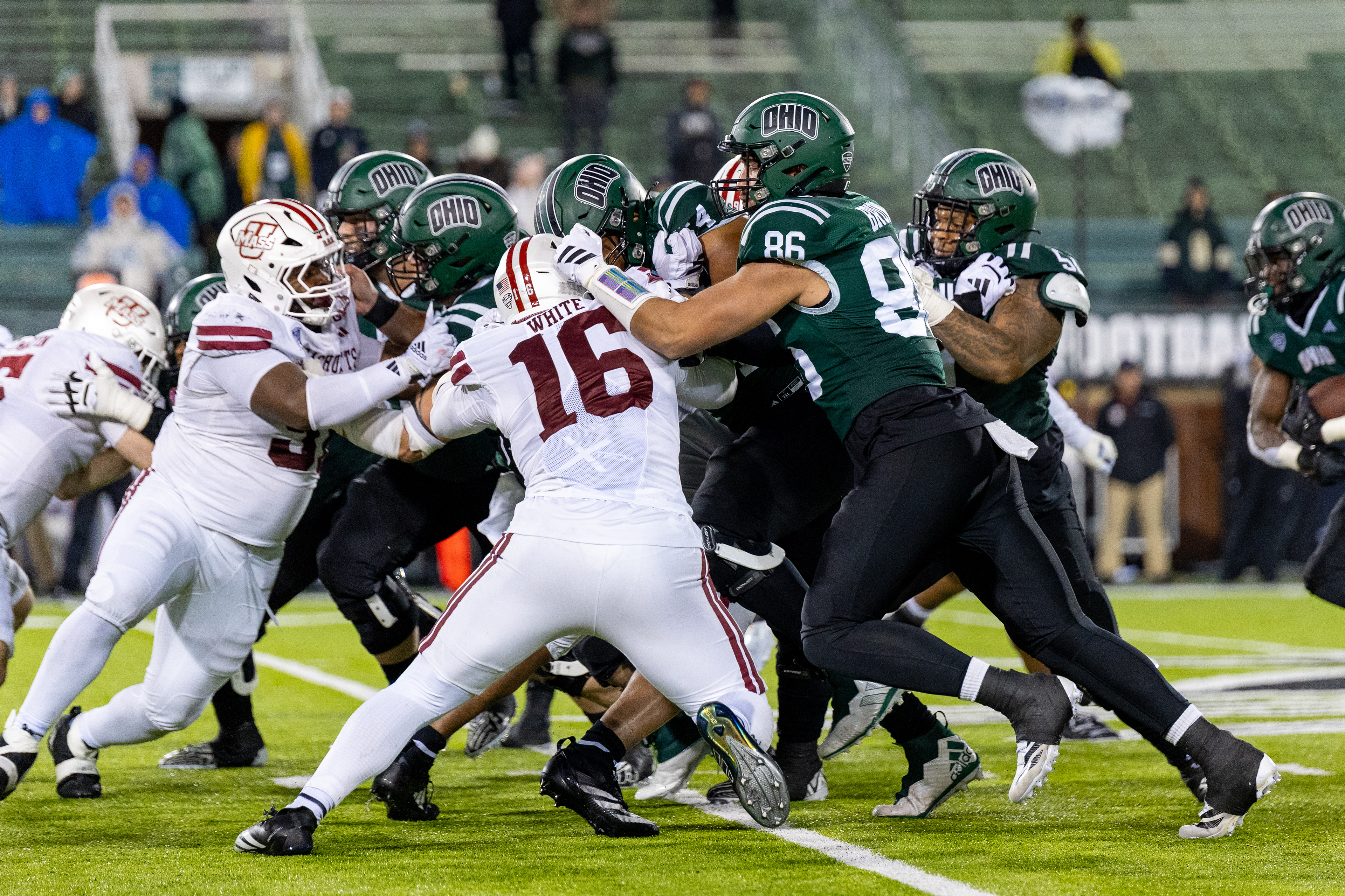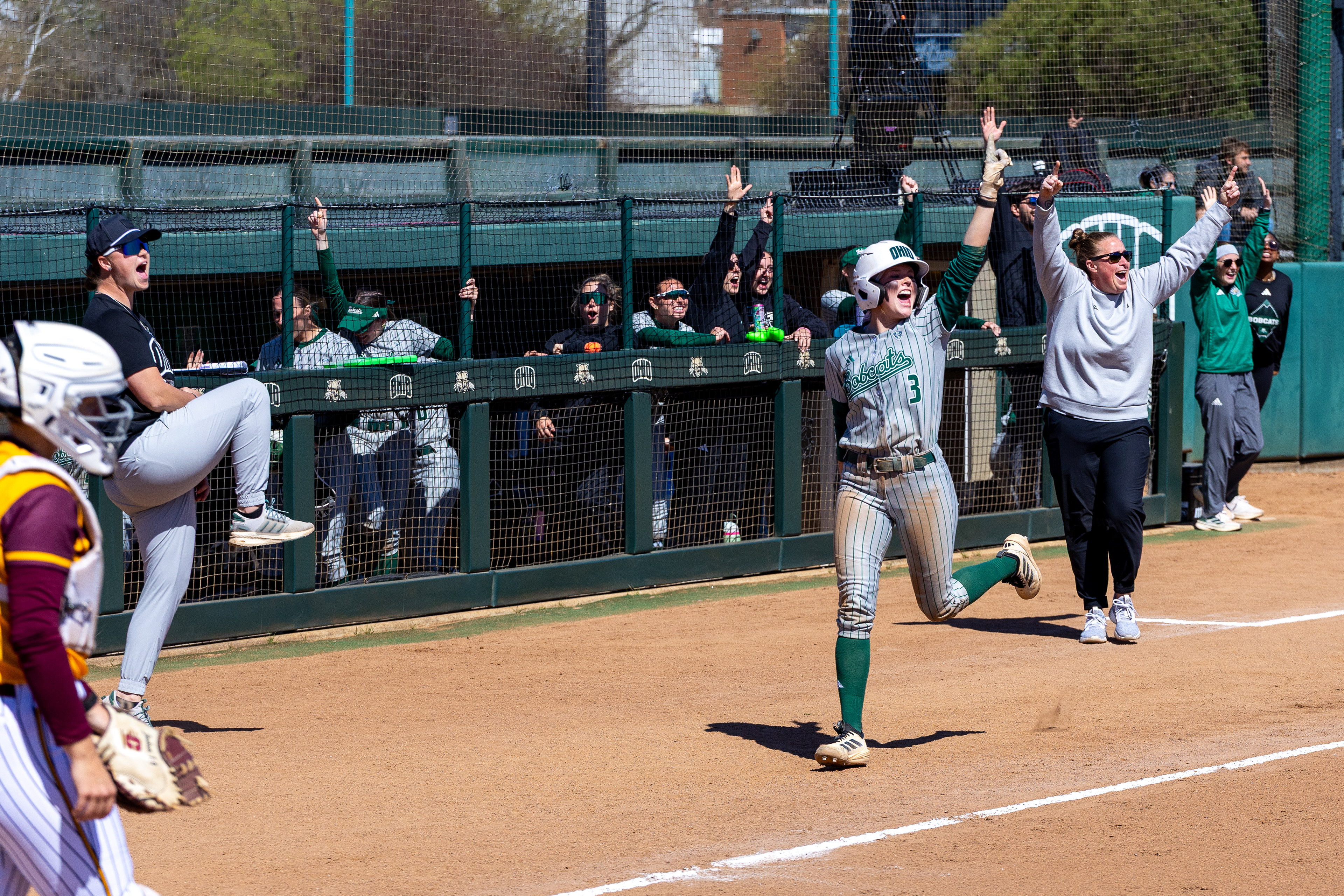 Ohio Bobcats #6, Coleman Owens, celebrates after a touchdown against the Buffalo Bulls at Peden Stadium on October 26 2024.