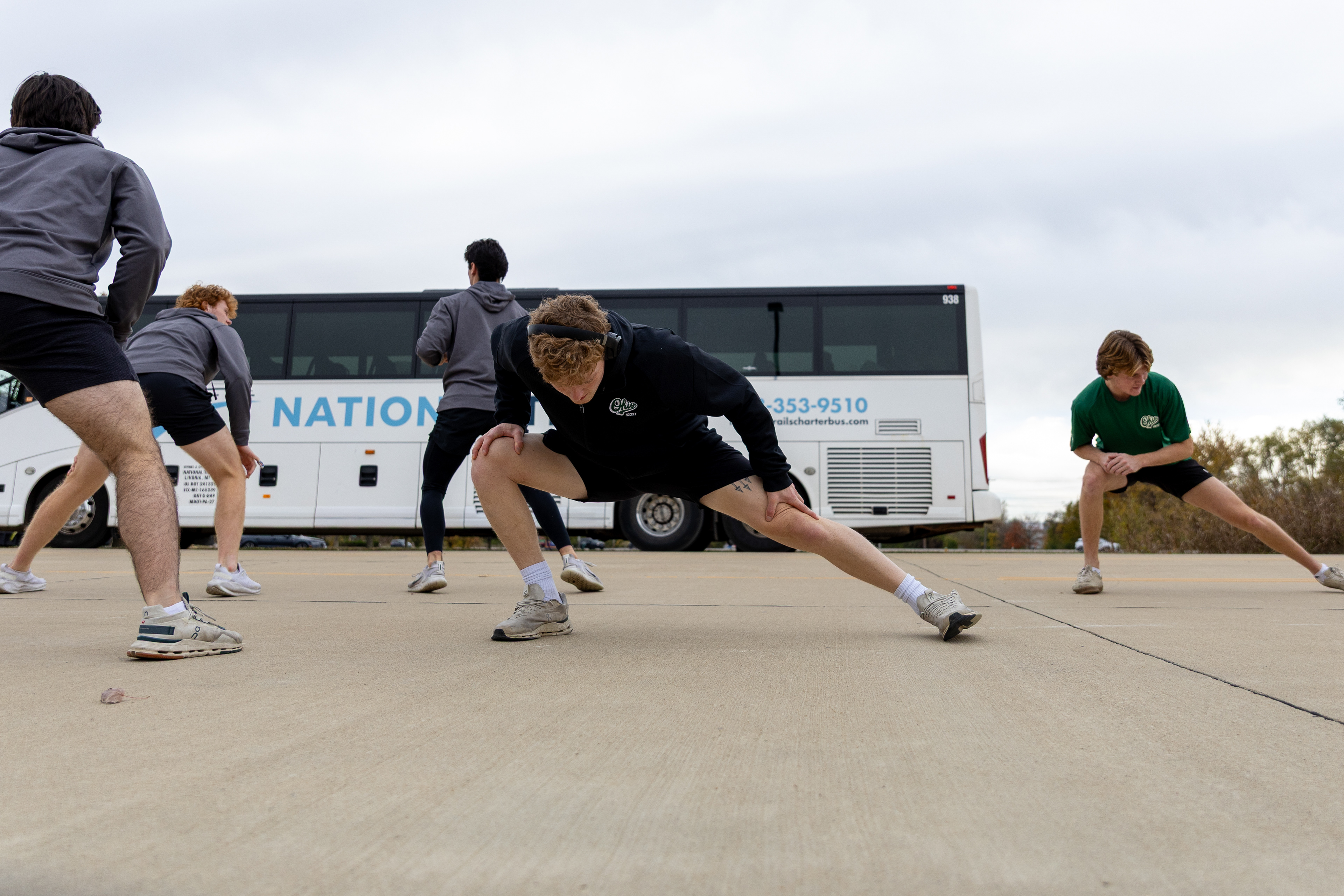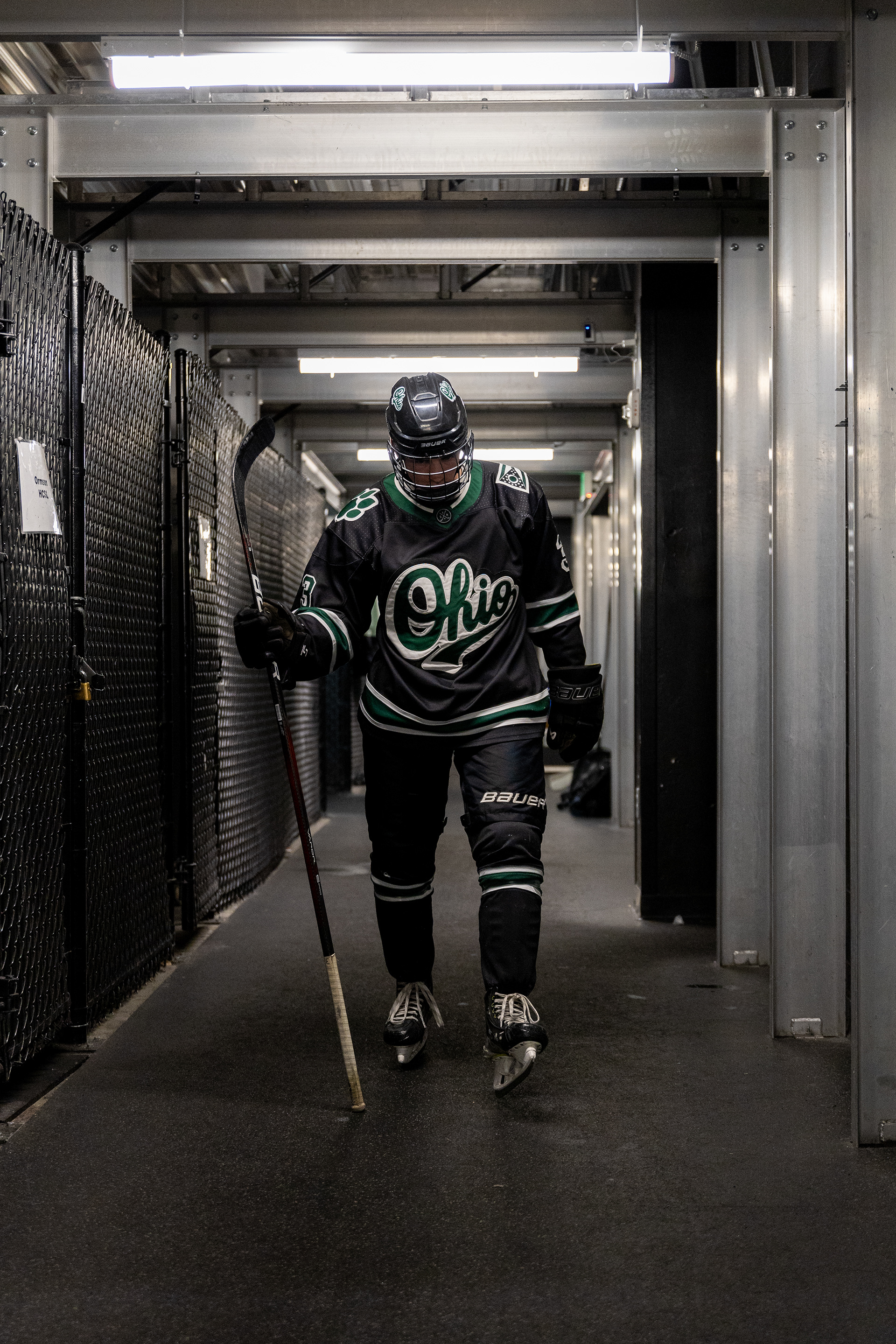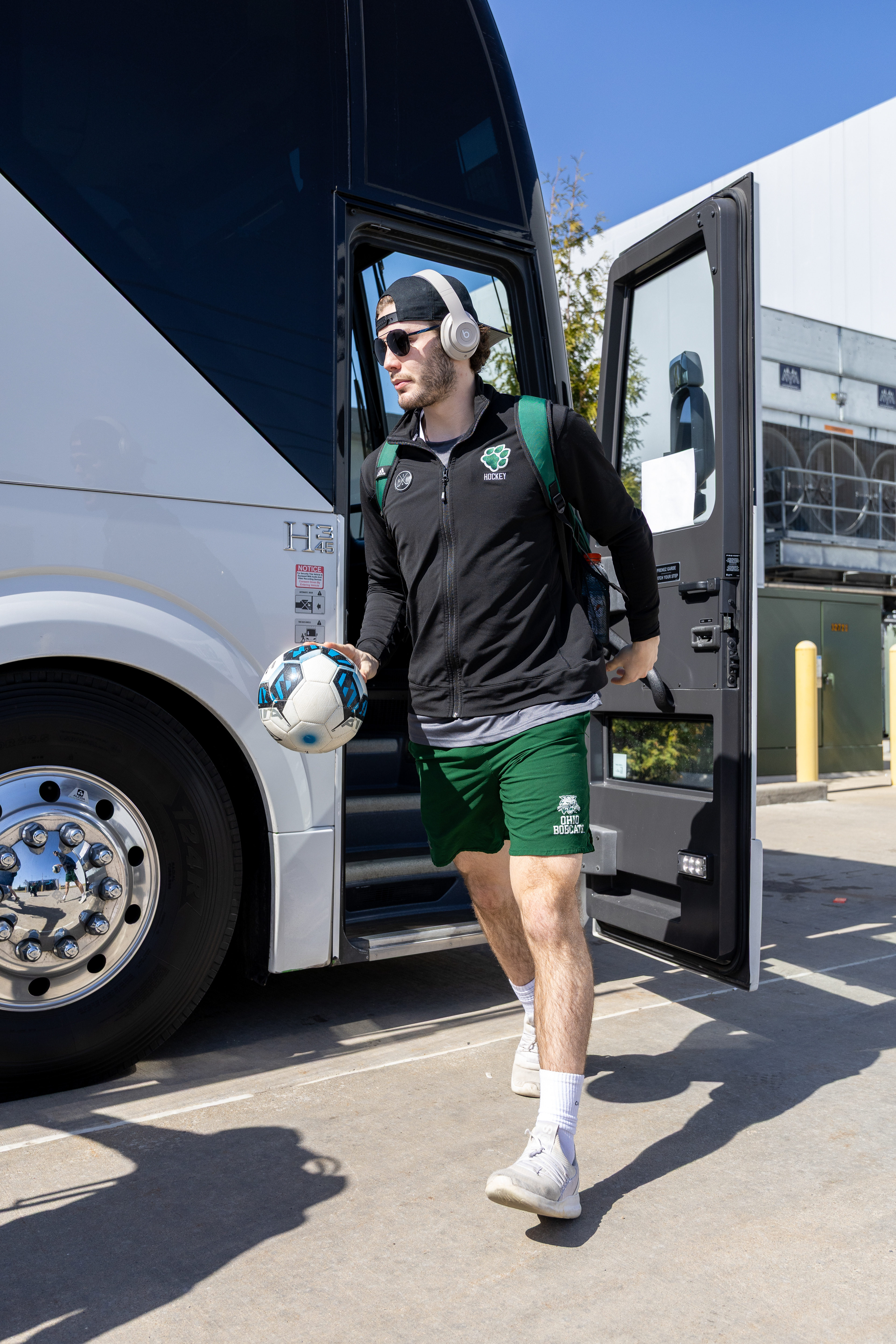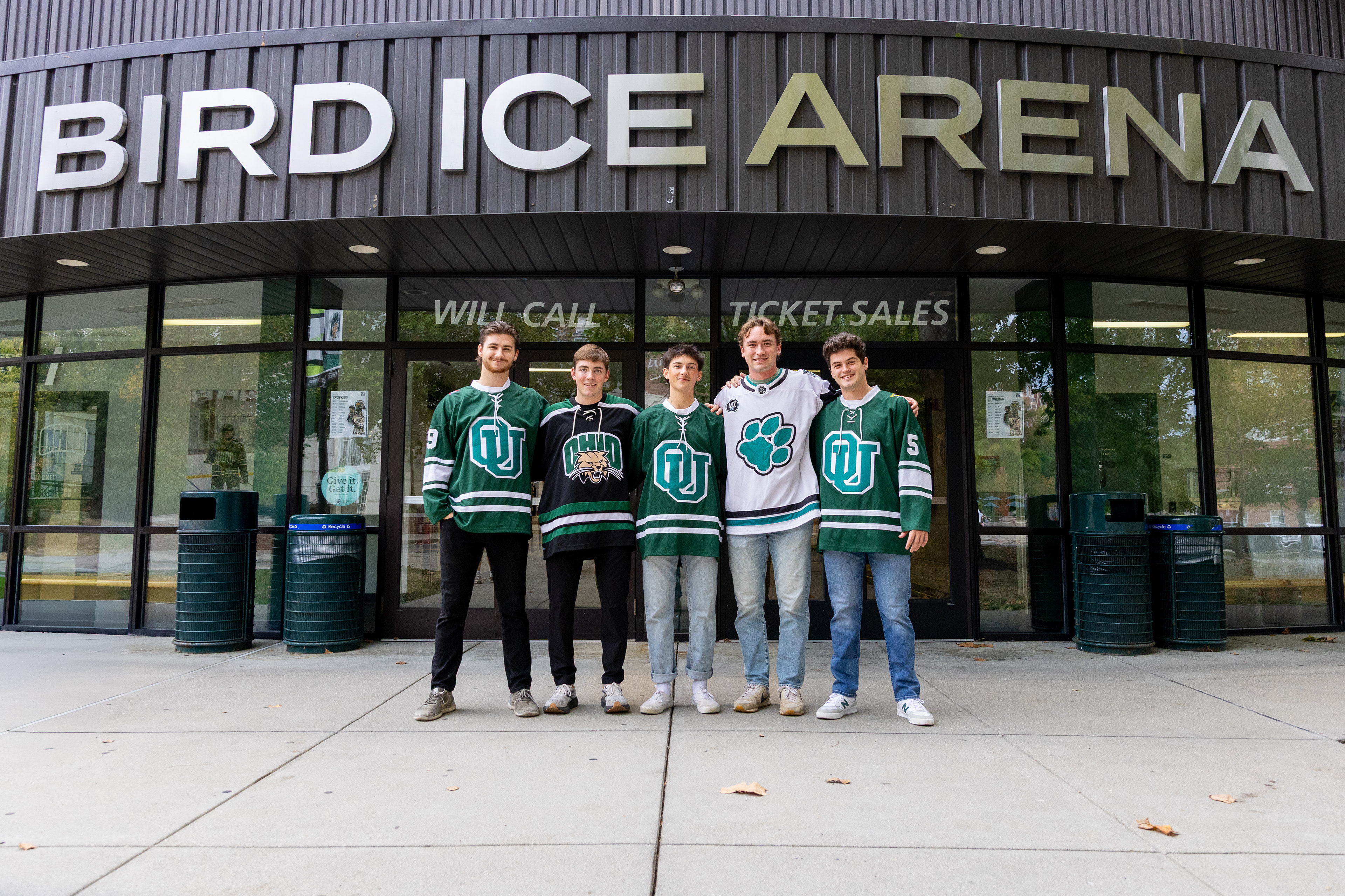 Ohio Bobcats Forward #5, Braeden Whitesell, poses for a photo as he walks into the rink before a game at Bird Ice Arena on September 26 2025.
