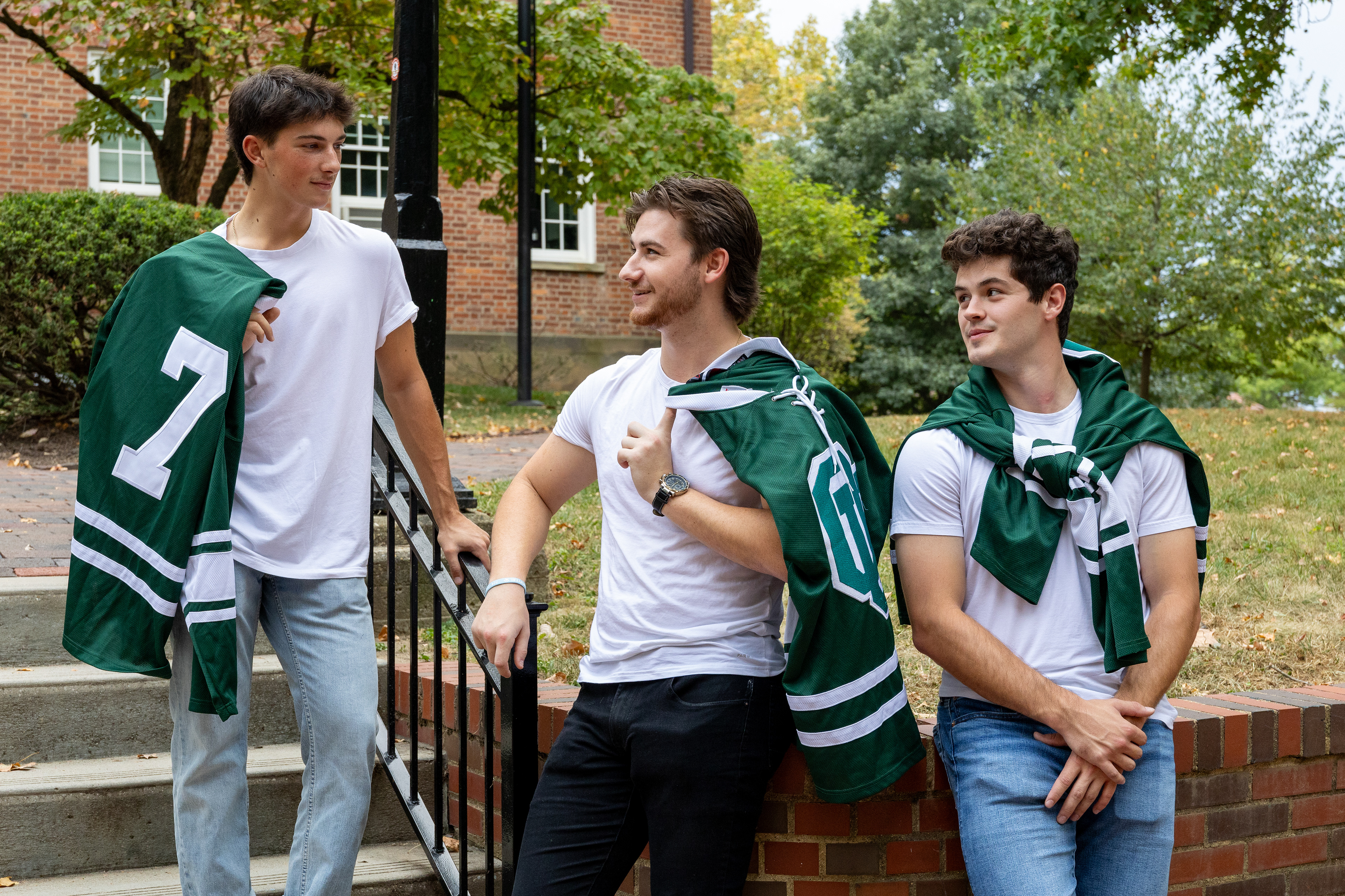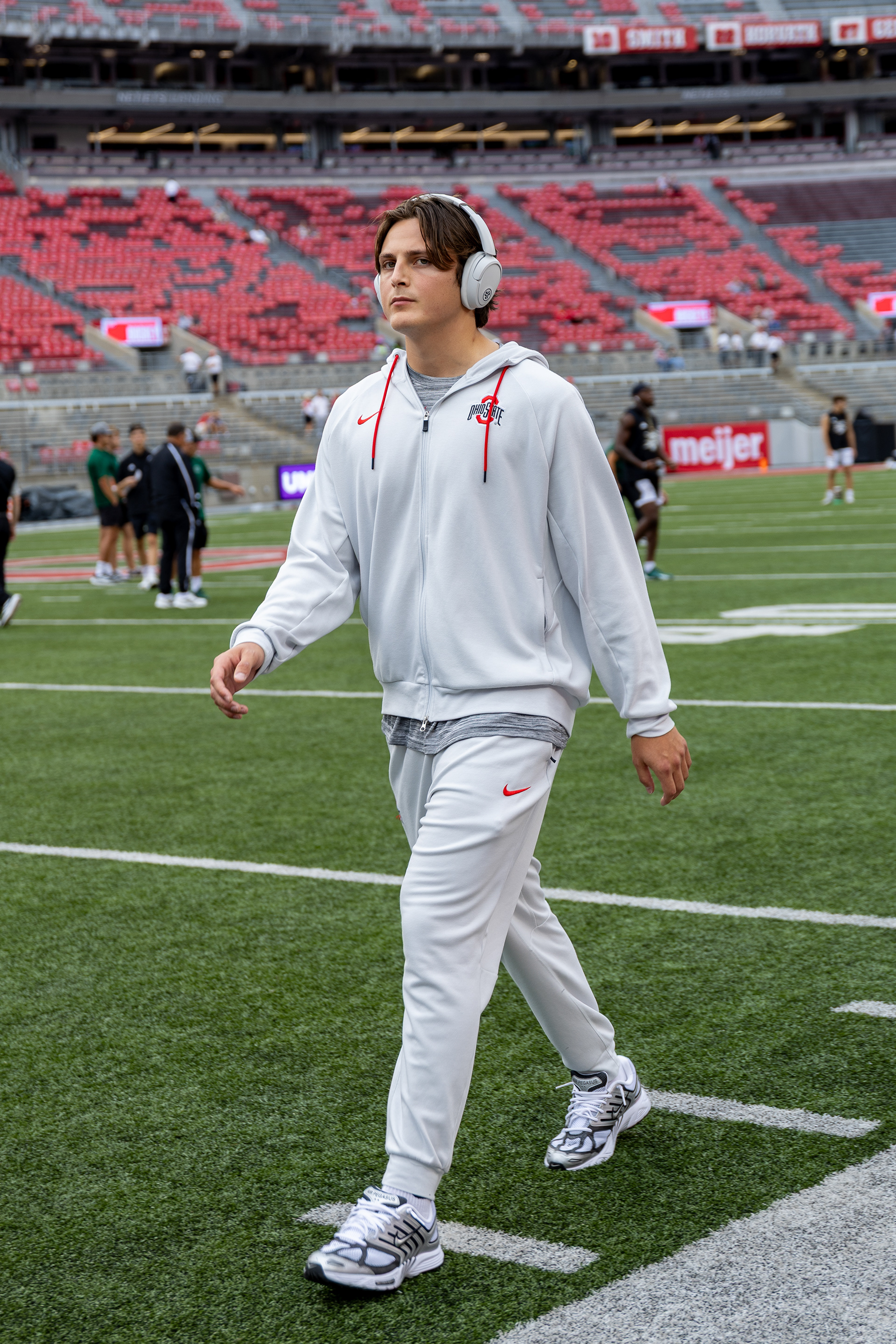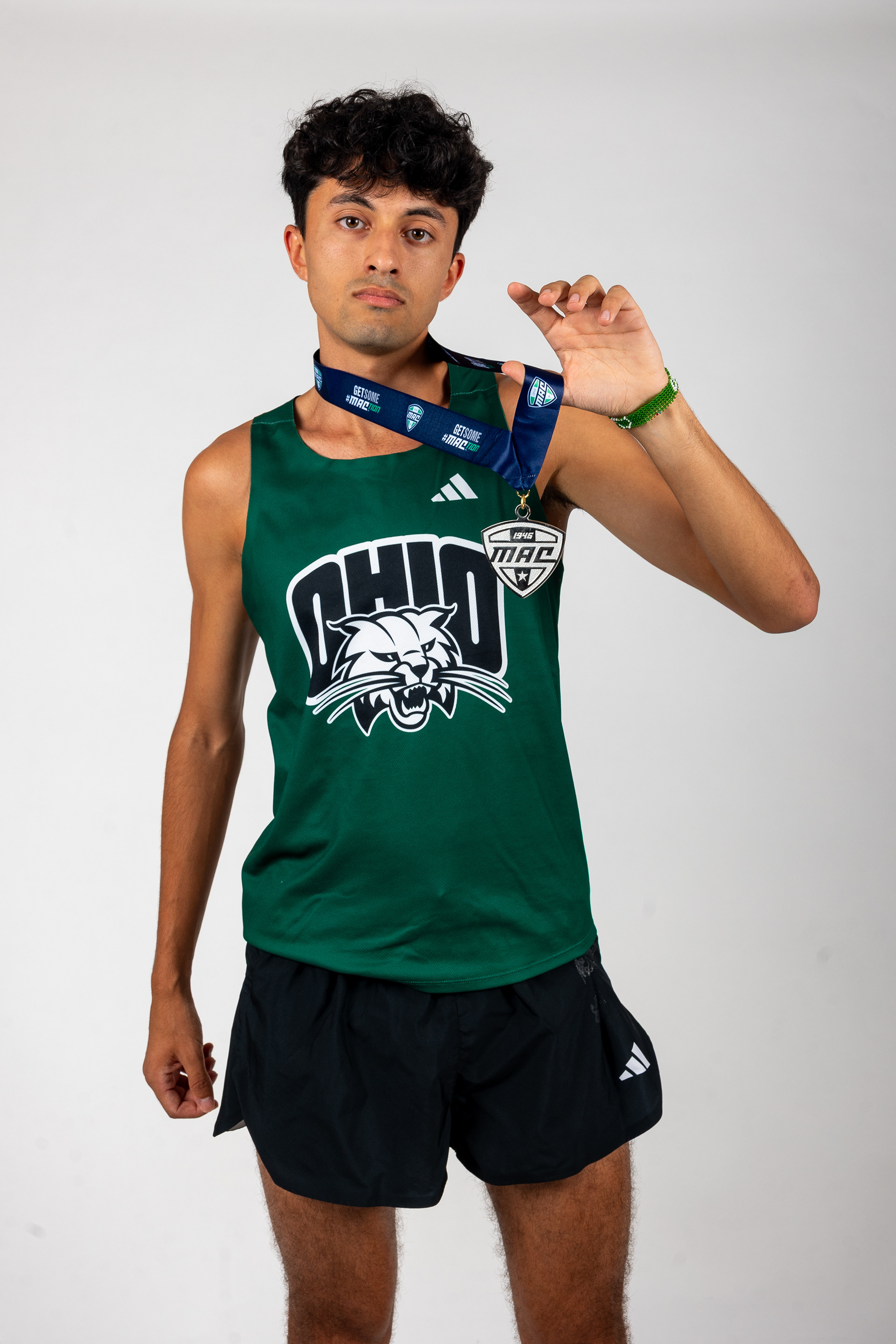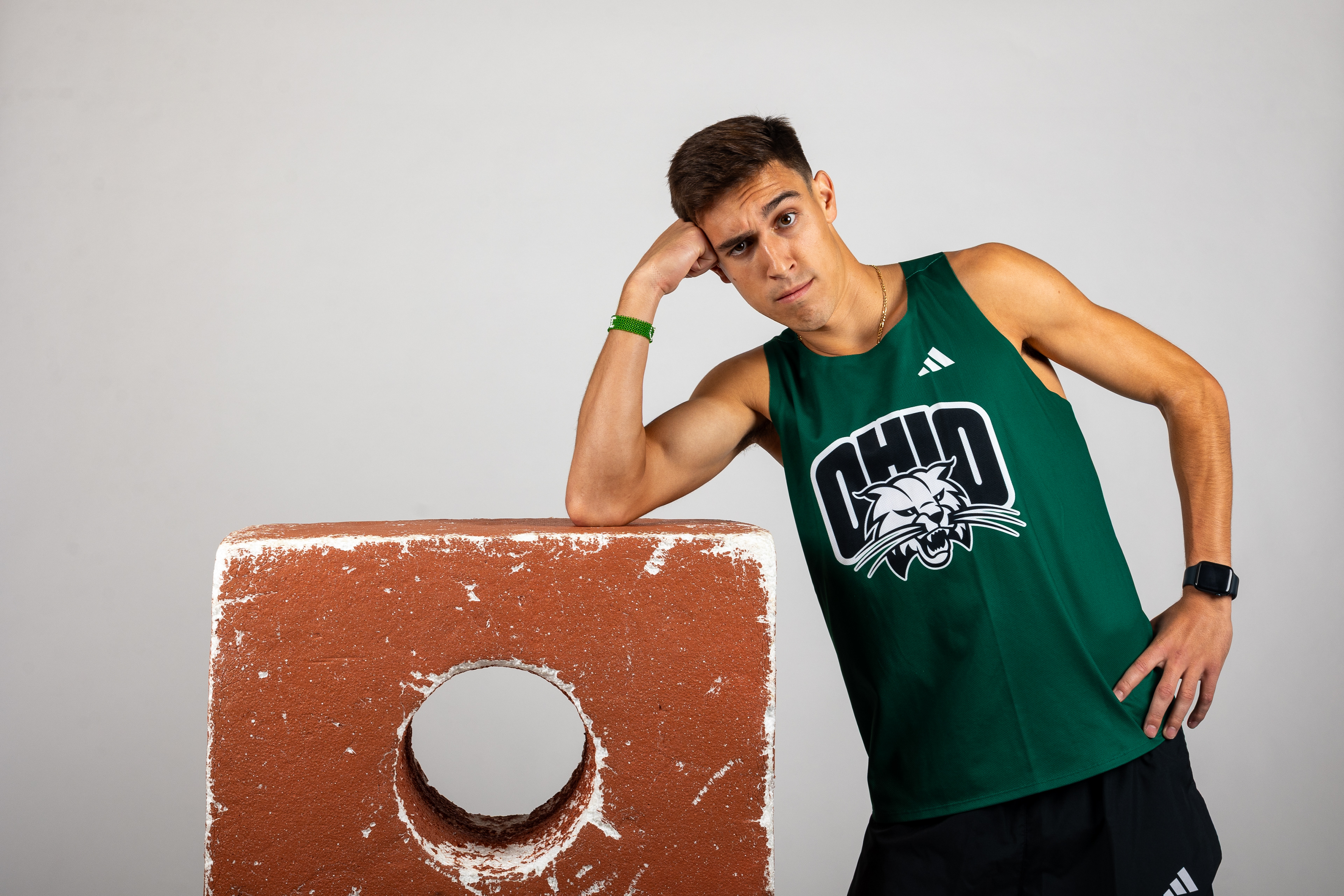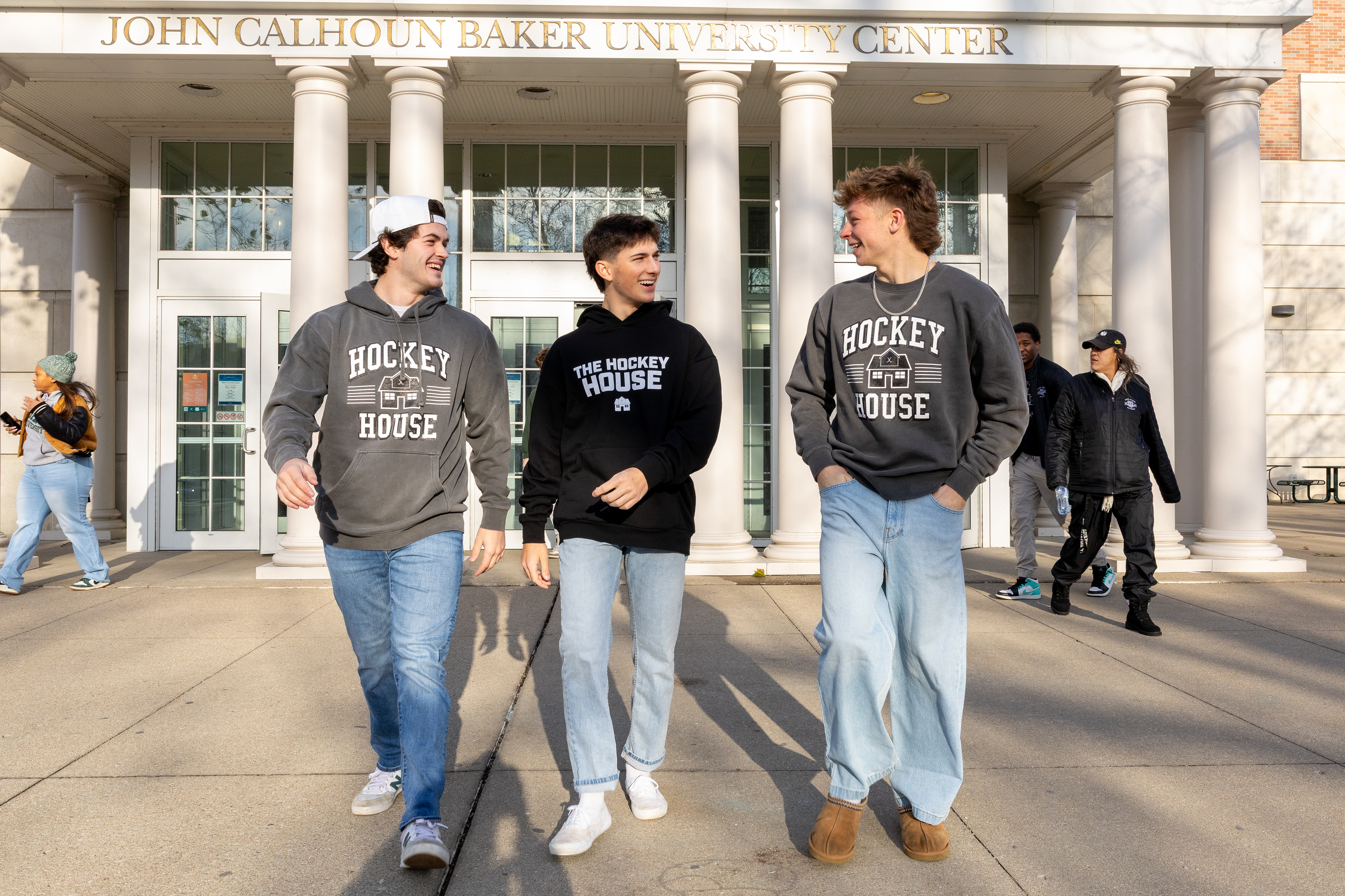 Ohio Bobcats Forward #5, Braeden Whitesell, poses for a photo as he walks into the rink before a game at Bird Ice Arena on September 26 2025.