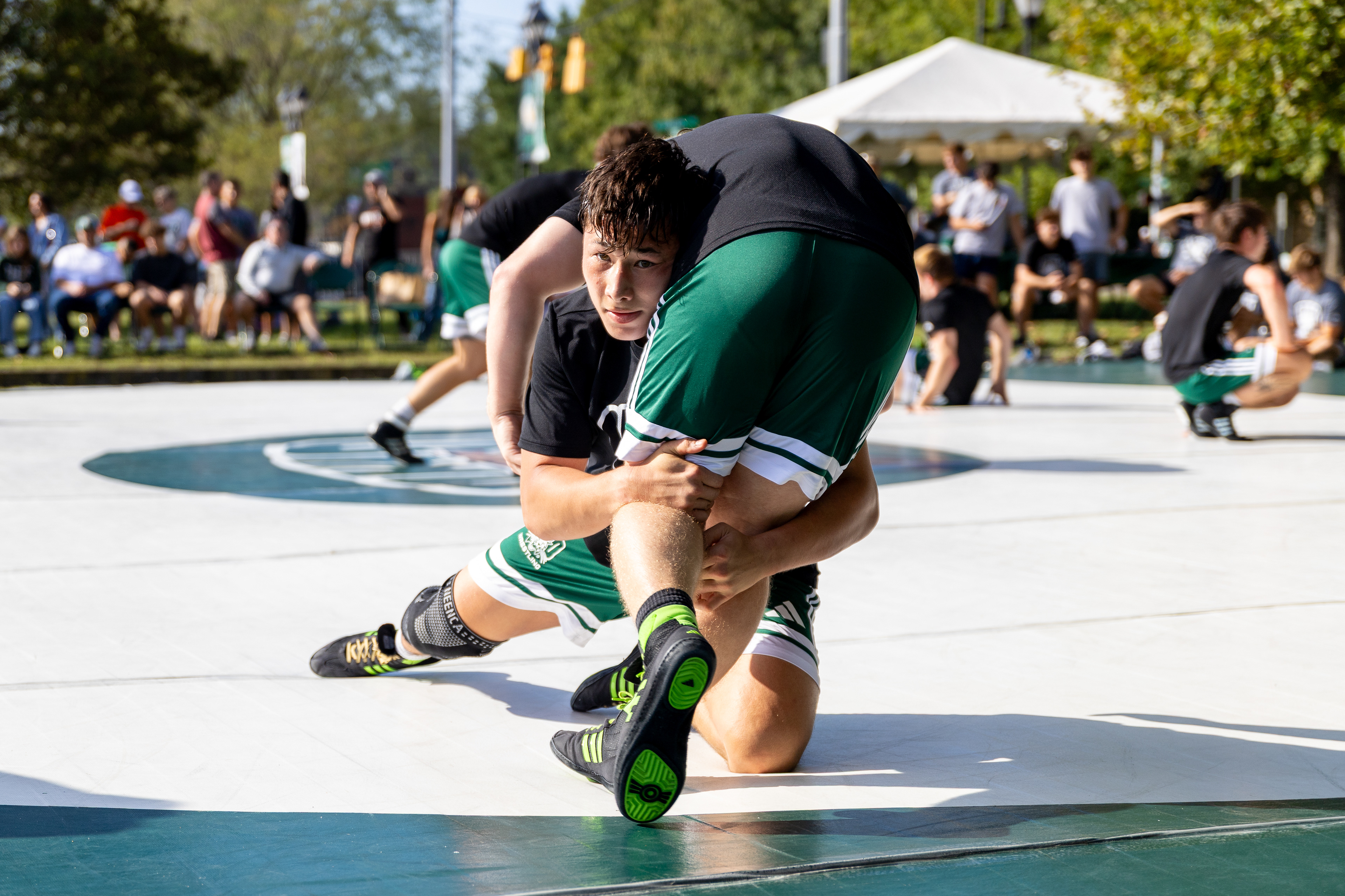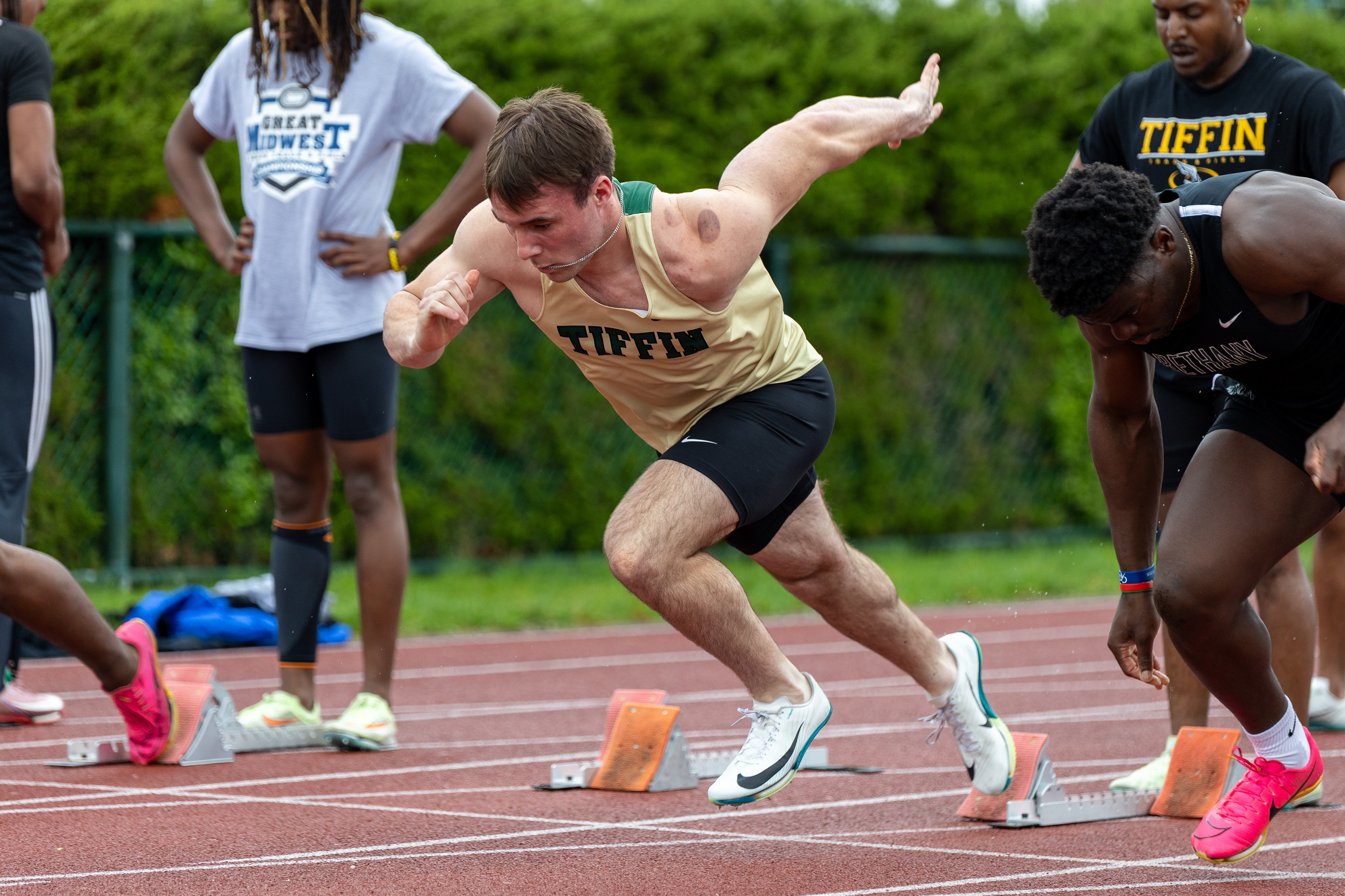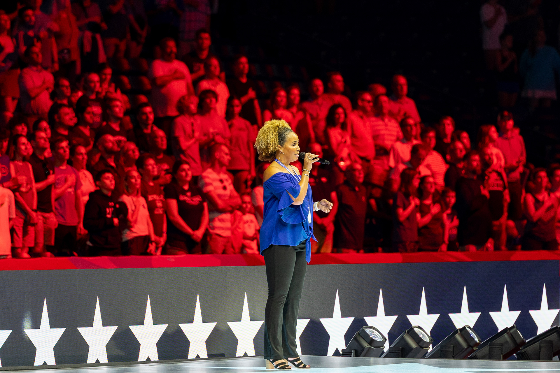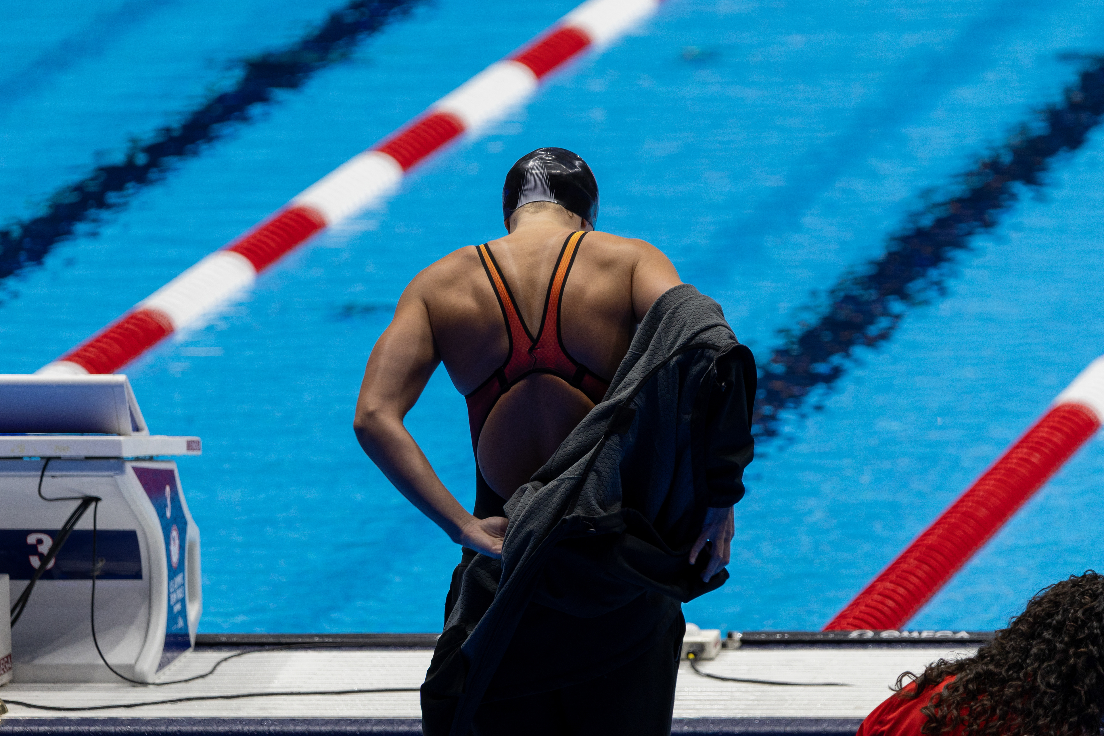 Carson Foster from Cincinnati, OH takes it all in before being interviewed by NBC after winning the 400 Individual Medley with a time of 4:07.64 at the U.S. Olympic Team Trials at Lucas Oil Stadium on June 16 2024.