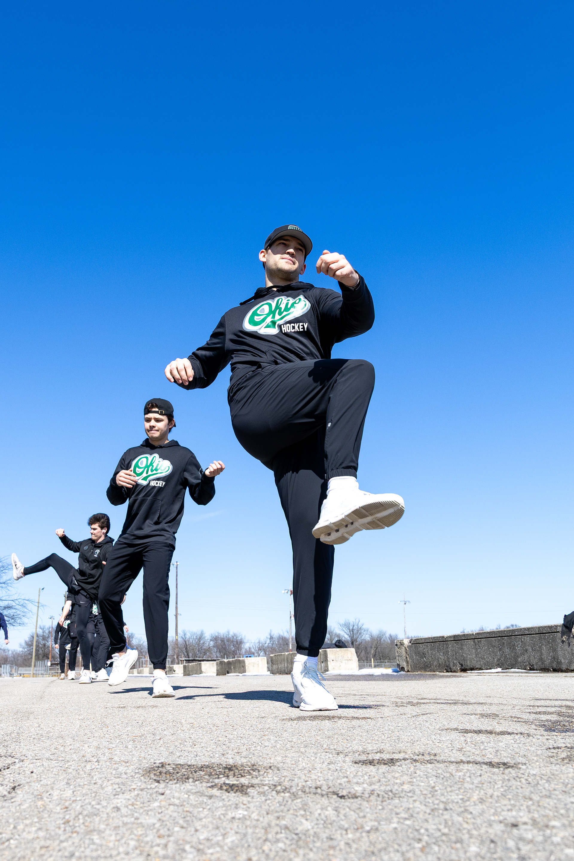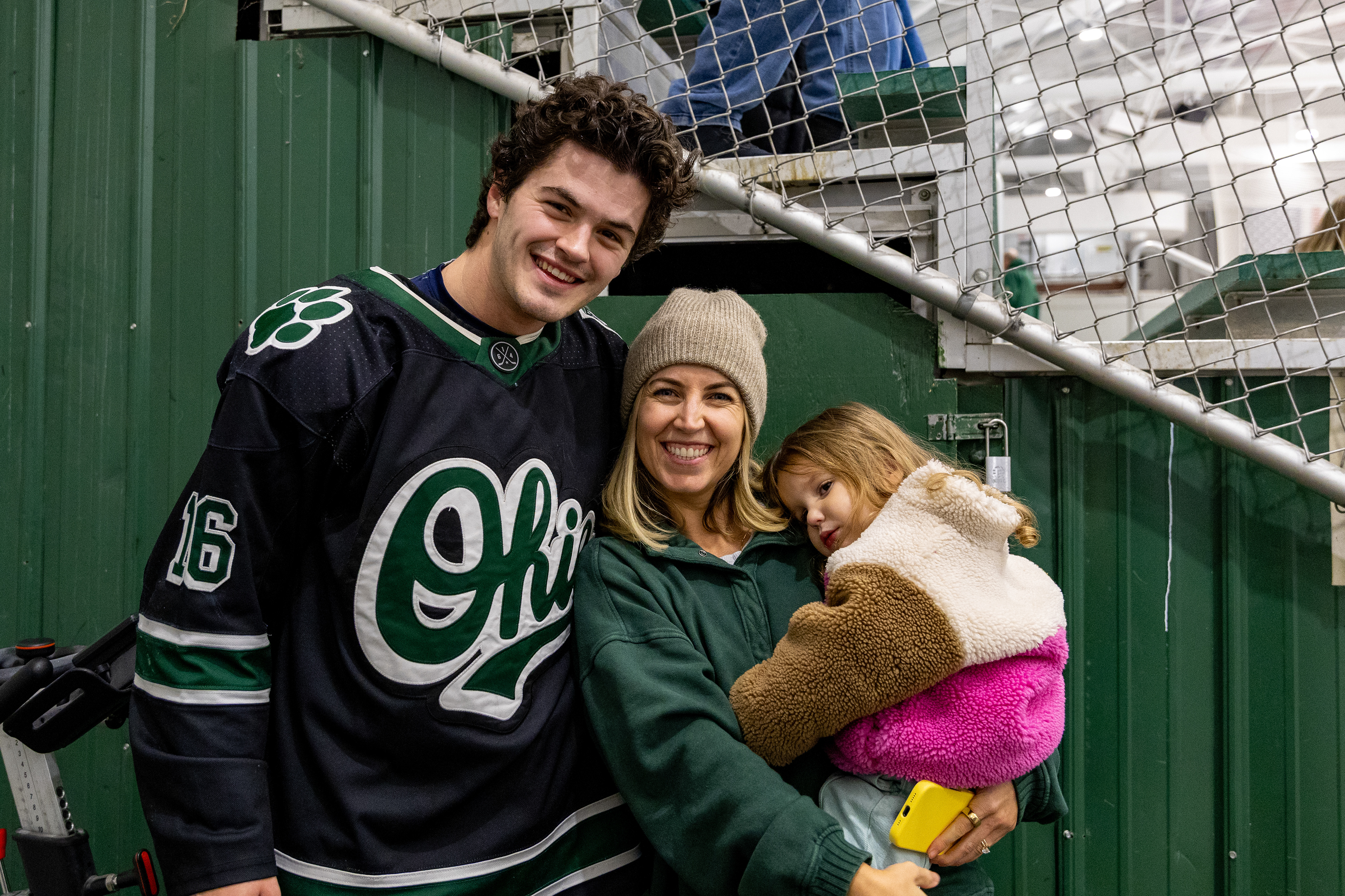 Ohio Bobcats Forward #19, Josh Folmer, poses for a photo as he walks into the rink before a game at Bird Ice Arena.