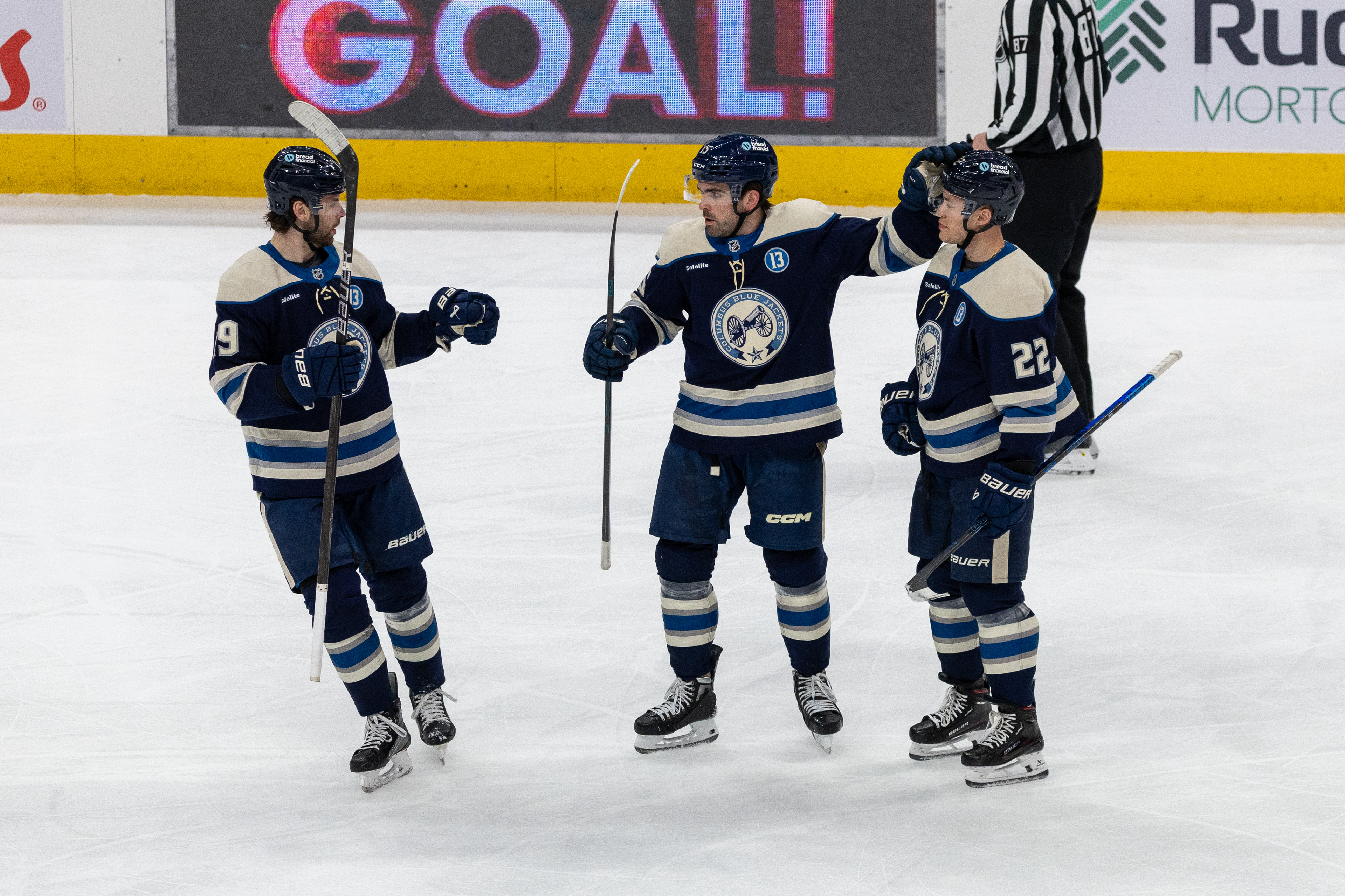 Columbus Blue Jackets Forward, Jack Williams, makes his NHL debut and takes his rookie lap at the last home game against the Islanders at Nationwide Arena on April 17, 2025.