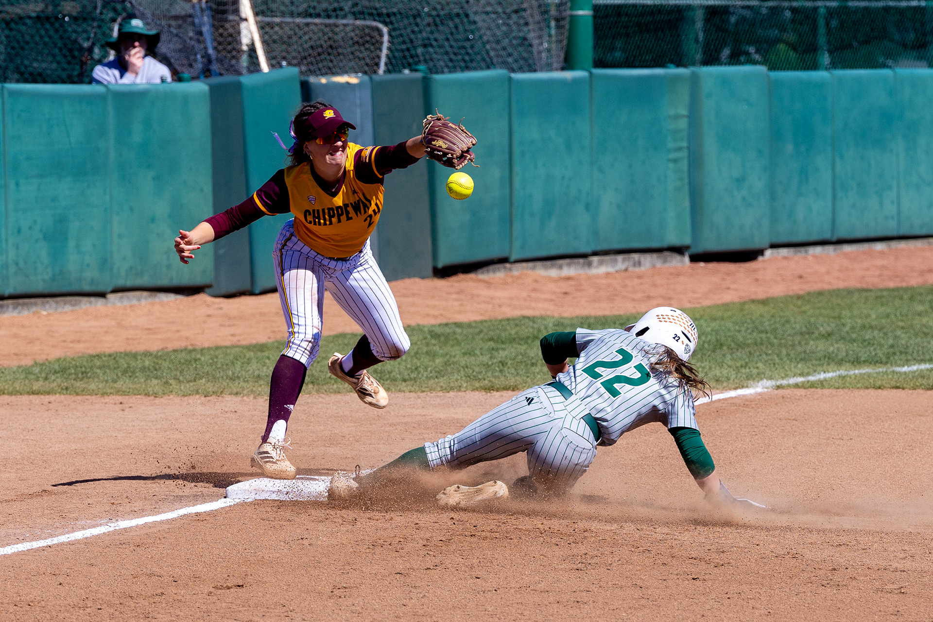 Ohio Bobcats Goalie #29, James Saber, blocks a shot at the game against WVU at Wesbanco Arena on September 15 2024.