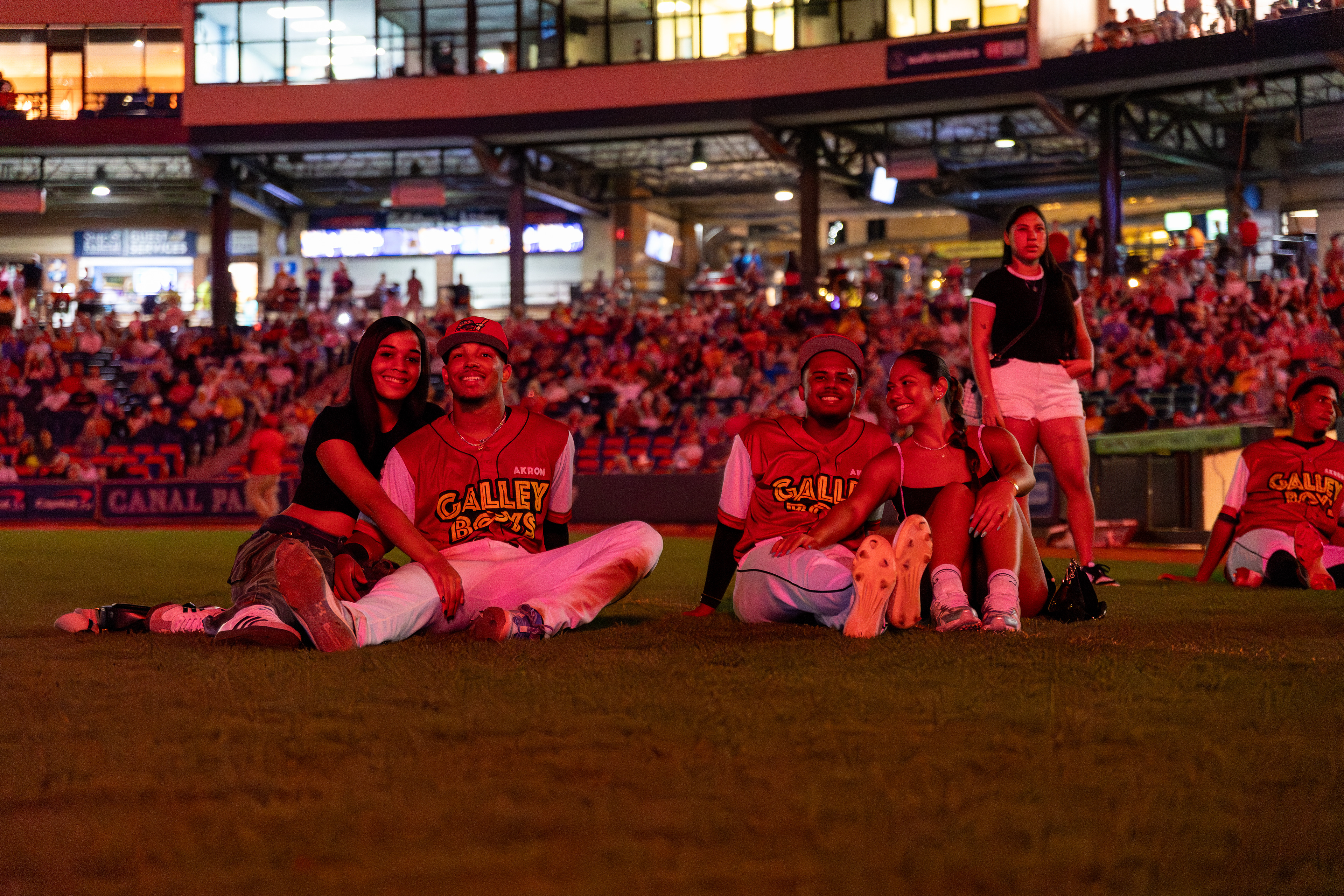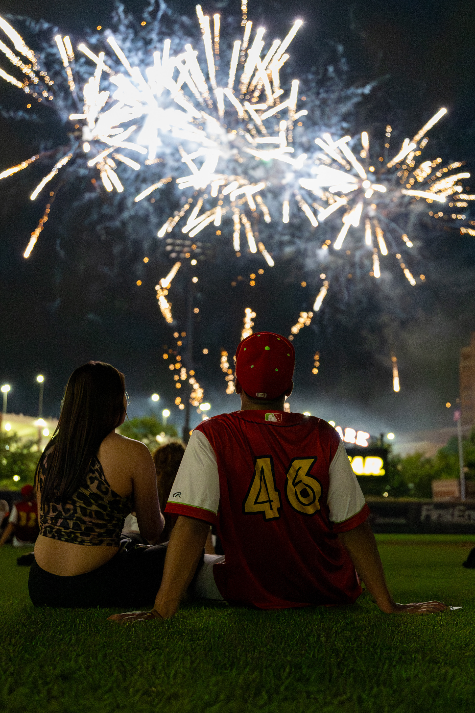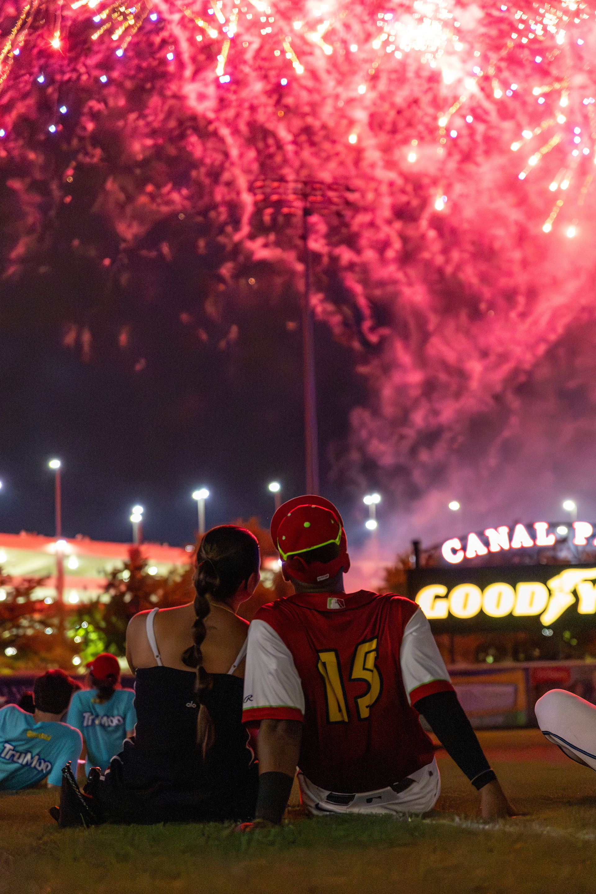 Milán Tolentino and Alexfri Planez watch fireworks with their significant others after the game at Canal Park on May 18 2024.