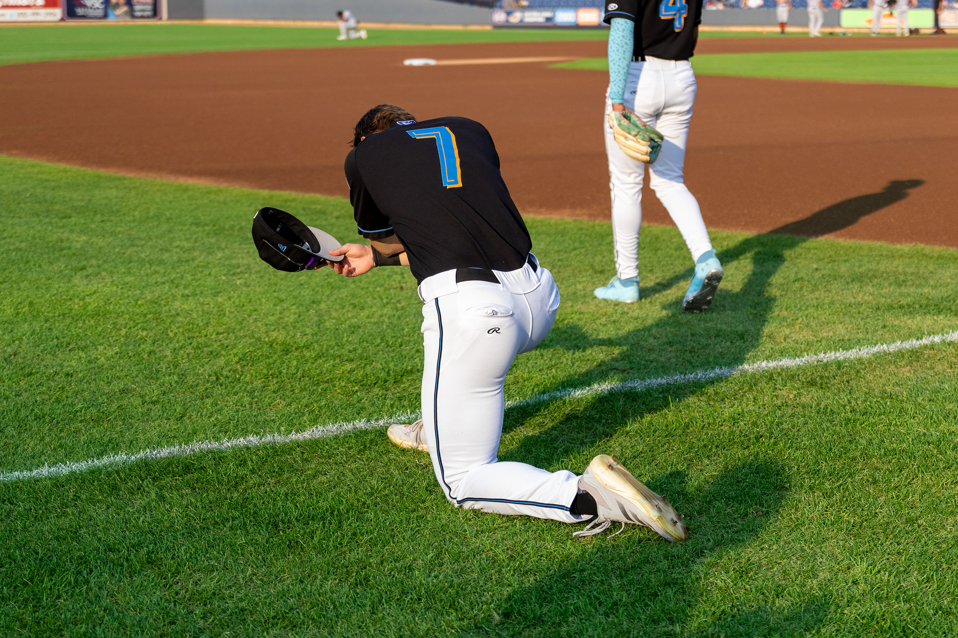 Dayan Frias shakes off after having gatorade being poured on him at Canal Park August 11 2024.