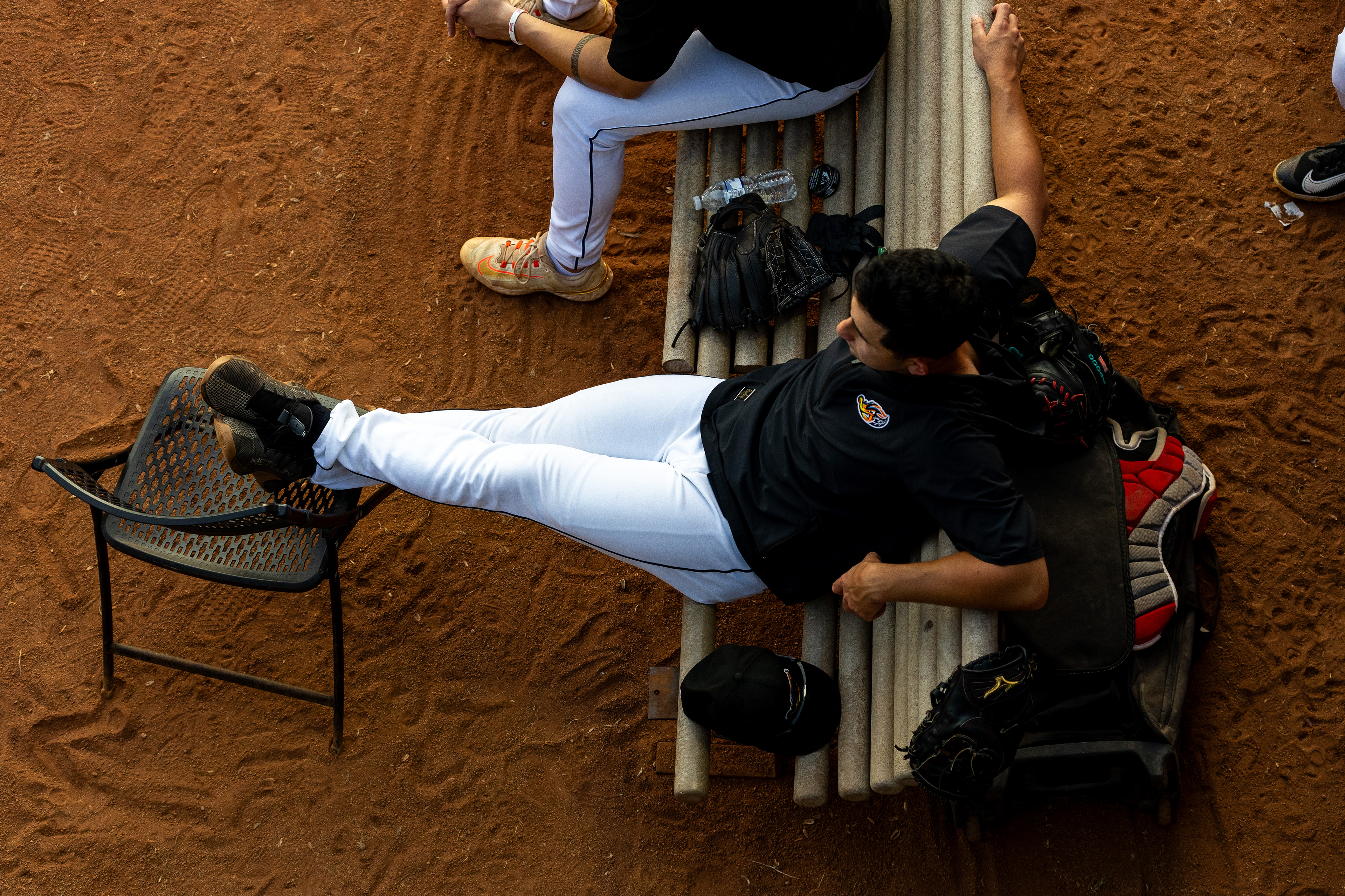 One of the ball boys at Canal Park sits on a bucket on August 11 2024.