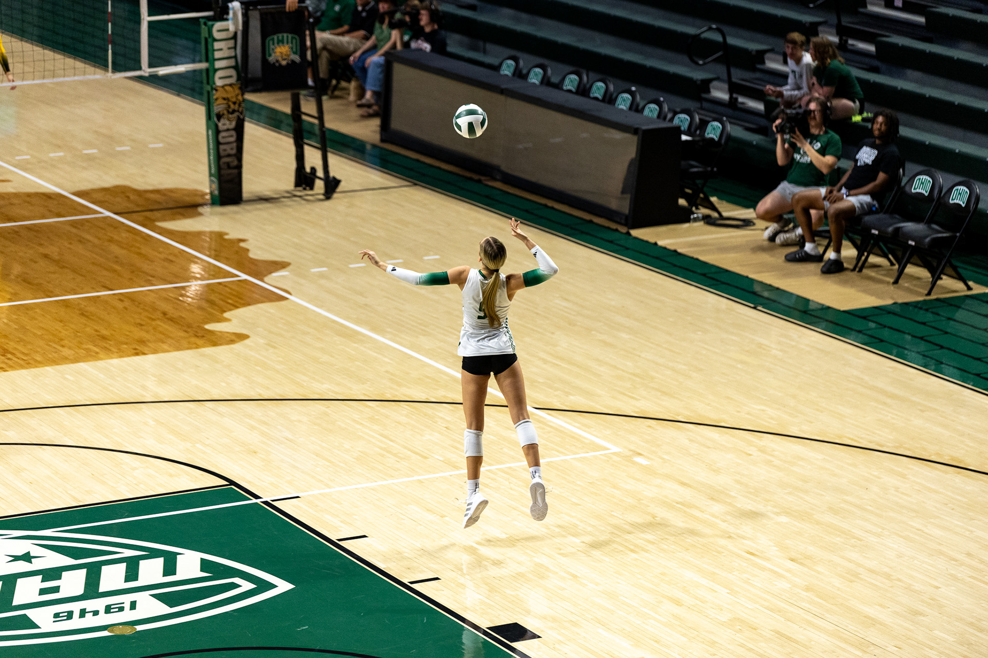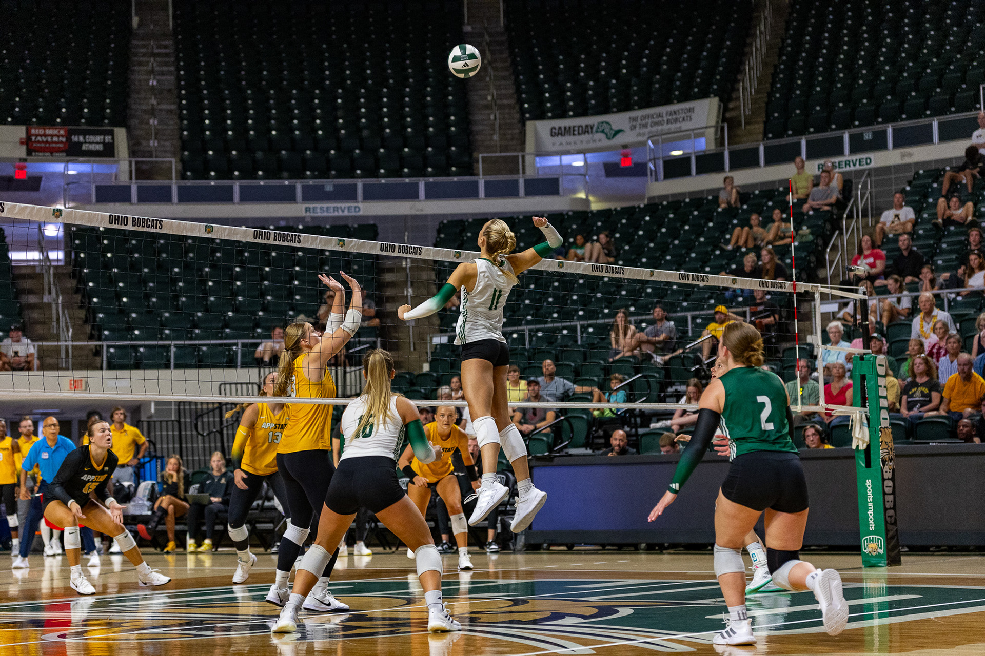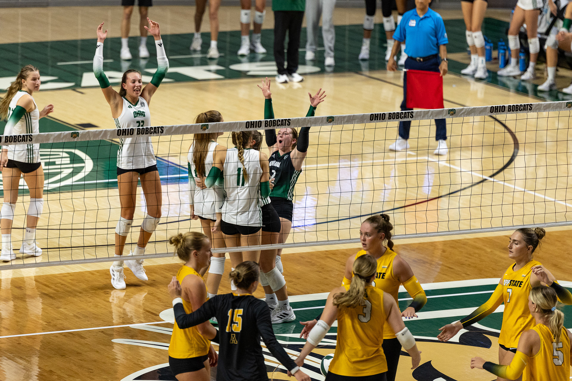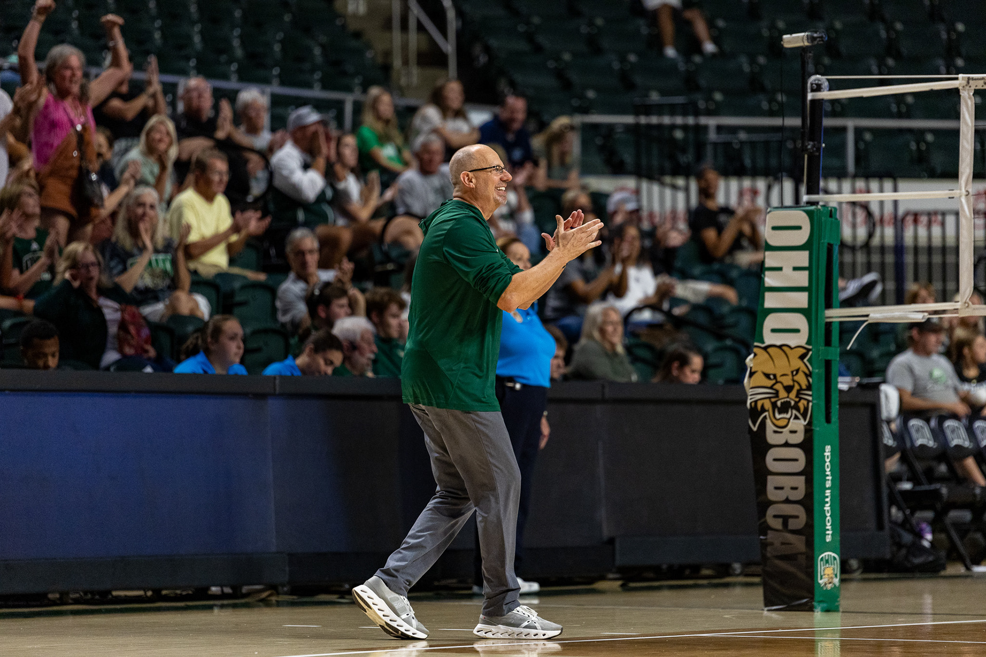 Ohio Bobcats #6, Coleman Owens, celebrates after a touchdown against the Buffalo Bulls at Peden Stadium on October 26 2024.